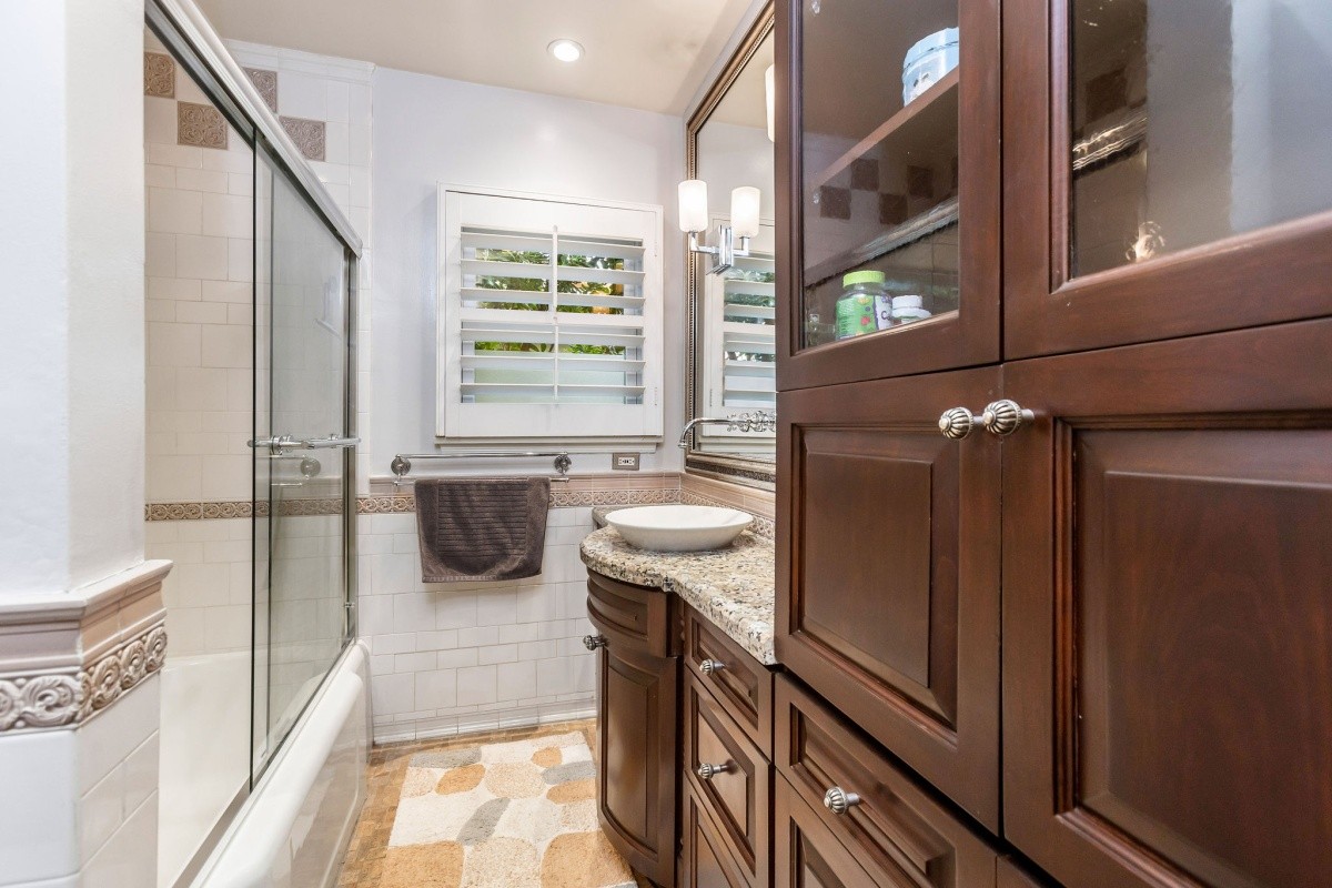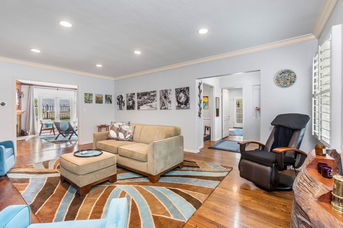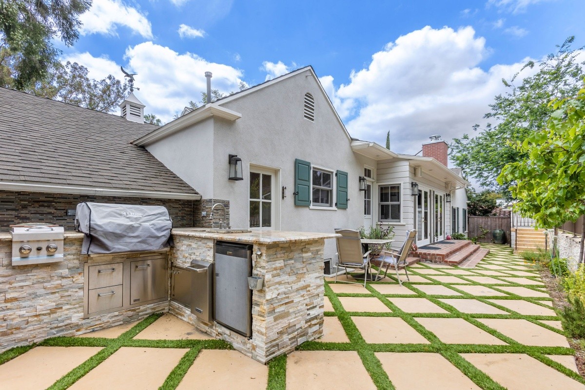 Set back behind stately gates and park-like grounds boasting mature trees and gently rolling lawns, this picturesque 1941 traditional with sparkling pool resides on over 1/3 acre usable lot and exudes timeless beauty and enduring appeal. Lovingly maintained and upgraded, the 3-bedroom residence features glossy hardwood floors throughout the entertaining space and bedrooms, and a wonderfully flexible layout for entertaining or casual everyday living. The foyer opens into an elegant living room with fireplace, recessed lights, and crown moldings, and the entry also adjoins a formal dining room and convertible 3rd bedroom/ office space. The gourmet chef's kitchen with center island includes a Sub-Zero refrigerator/ freezer, granite counters, and classic 6-burner Wedgewood stove. Peaceful bedrooms provide calming spaces for repose, and are complimented by tastefully appointed baths. The spacious family room with fireplace and gorgeous wood built-ins opens out to the amazing backyard oasis, complete with huge pool, sun deck, pool/ exercise room with 3/4 bath, cabana, and outdoor kitchen with stainless steel appliances and granite counters. Surrounded by multi-million dollar estates, endless possibilities abound for enjoying this charming home as-is, adding on, or redeveloping a brand new masterpiece.