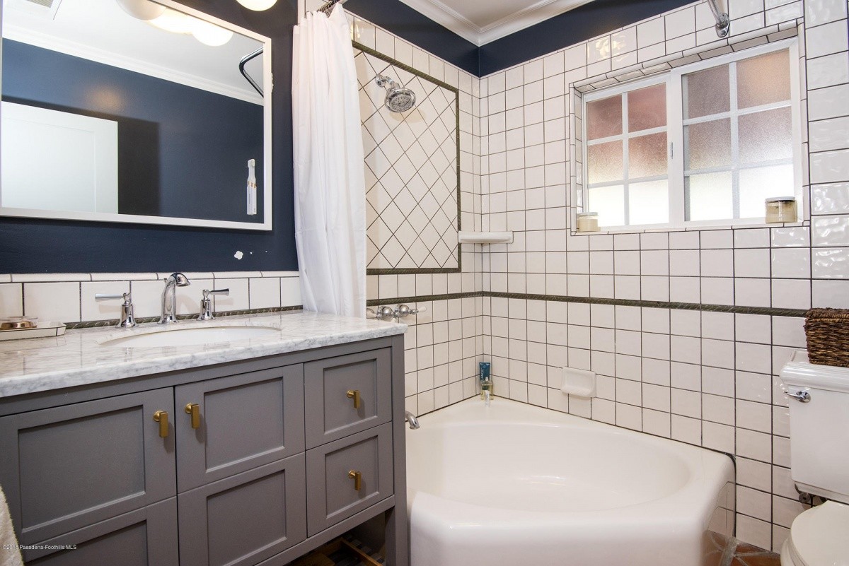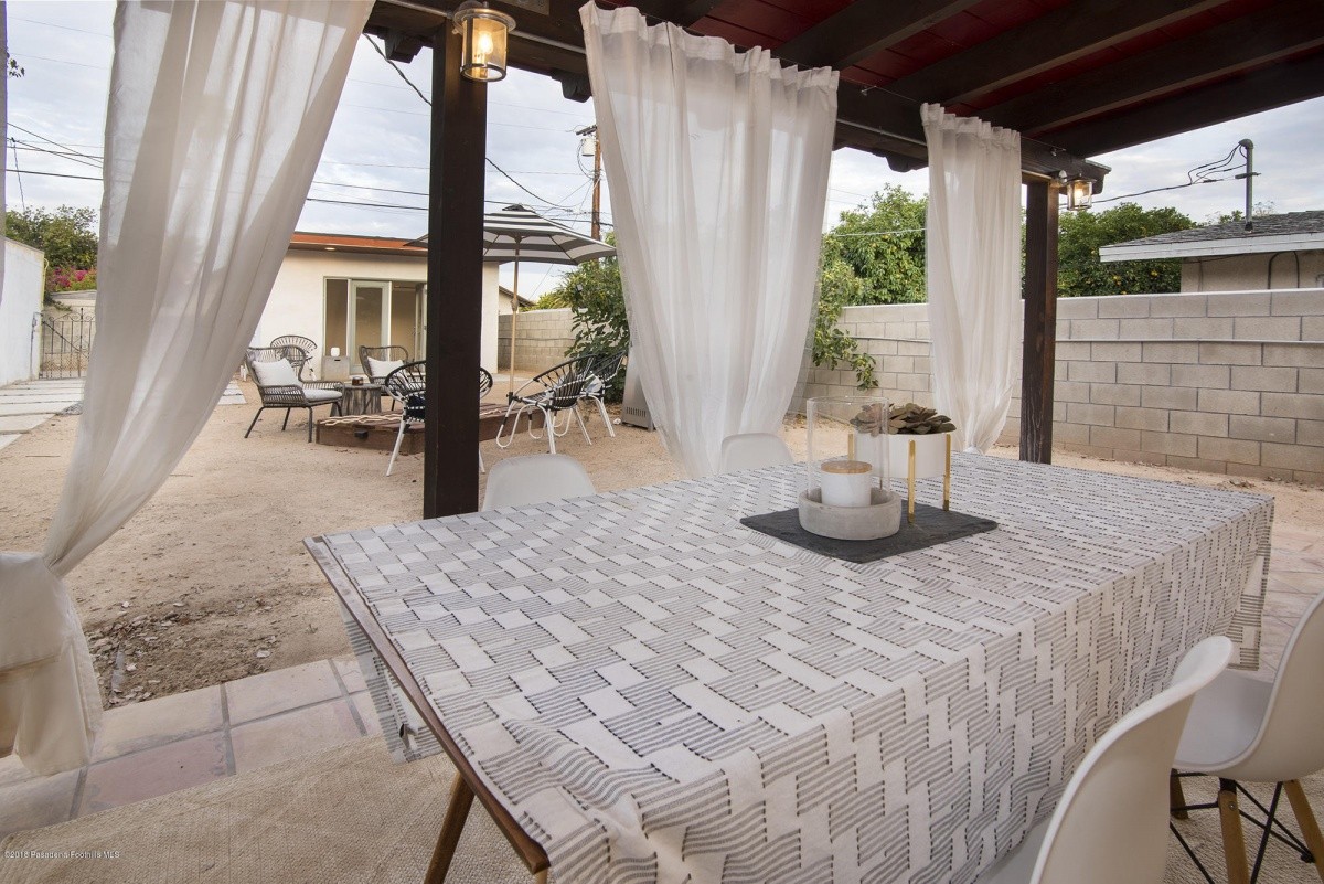Nestled mid-block on a quiet, tree-lined street, this charming 1921 classic has undergone a sleek modern makeover! Dark hardwood floors, white walls, recessed lighting, and an electric fireplace create a crisp, clean vibe in the entertaining rooms. Natural light permeates the bedroom spaces, which overlook the front and the rear yards. At the end of the hallway lined with built in shelving resides a tastefully updated bathroom. The recently remodeled kitchen boasts stylish easy-access cabinetry, a streamlined new countertop and backsplash, farmhouse sink, and high quality stainless-steel appliances. Beyond the kitchen is a delightful breakfast nook, which leads out to the sprawling covered patio – perfect for outdoor entertaining and relaxing. The private back yard offers plenty of space for garden beds and other landscape features, and includes a permitted storage structure. A 1-car detached garage with extra storage space completes the property.