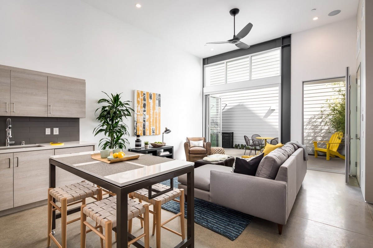 Clean lines, soaring spaces, and dramatic architectural elements permeate this brand new custom home located near tons of Santa Monica and Westside attractions. One of four stand-alone modern residences dubbed the Hangar 4 homes, 12109 Ocean Park pays homage to the history of the site, aerospace industry, and nearby airport. Yet the residence is completely forward looking in design and livability. Free-form ground level living areas with soaring walls of glass give way to private bedrooms and deck spaces upstairs. The open kitchen features Bosch appliances, plus a movable island for casual dining and entertaining. Minimalist landscaping ensconces the private front patio, providing beauty while remaining eco-conscious and low maintenance. A 2-car garage with direct home access and 240V EV charging outlet, tankless water heater, skylight, alarm wiring and motion sensors, and built-in audio speakers are a sampling of added features that exemplify 21st century living.