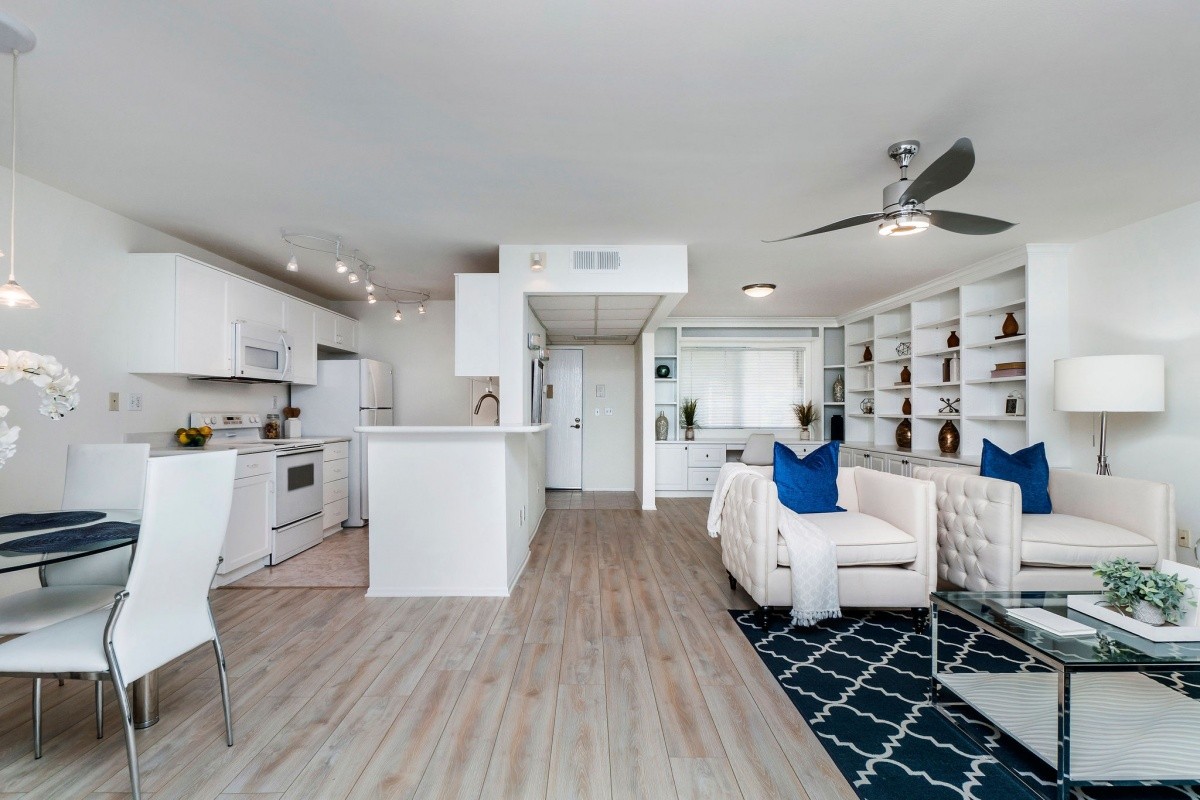 Multiple offers received, in escrow within 10 days, and closed for over the asking price! Newly refreshed interior finishes grace this open and spacious condo residence in a prime Studio City/ Sherman Oaks location! Moments away from Ventura Blvd, world class dining, shopping, entertainment/ attractions, and excellent schools, this expansive 1-bedroom unit includes a large den area with built-in shelving and desk for enhanced functionality, as well as new paint and flooring. The light and bright den and living room spaces flow effortlessly into the dining area and kitchen. Additional cabinet storage and a full bath reside off the hallway, as does the private master bedroom with walk-in closet. Other features include a fenced patio/ deck area accessible off the living room, TWO parking spaces, and a dedicated storage space in the garage! Well-maintained building with EQ insurance and a fabulous pool and patio area.