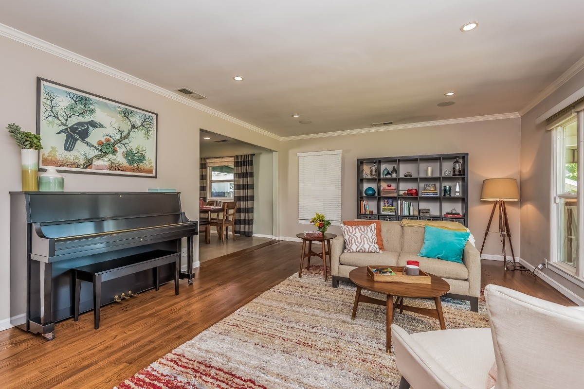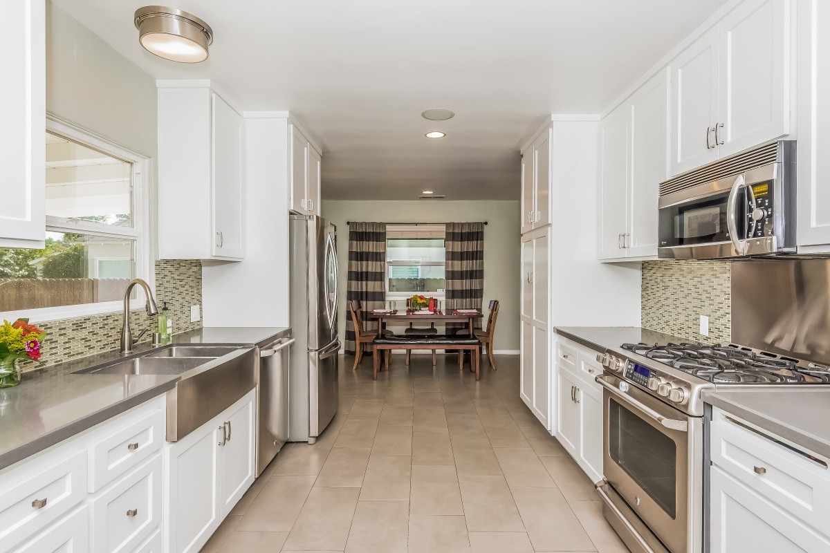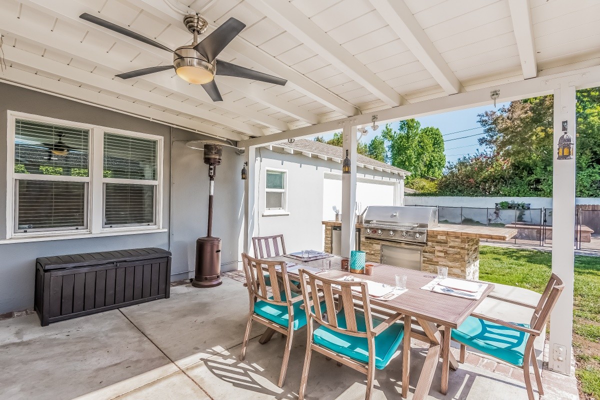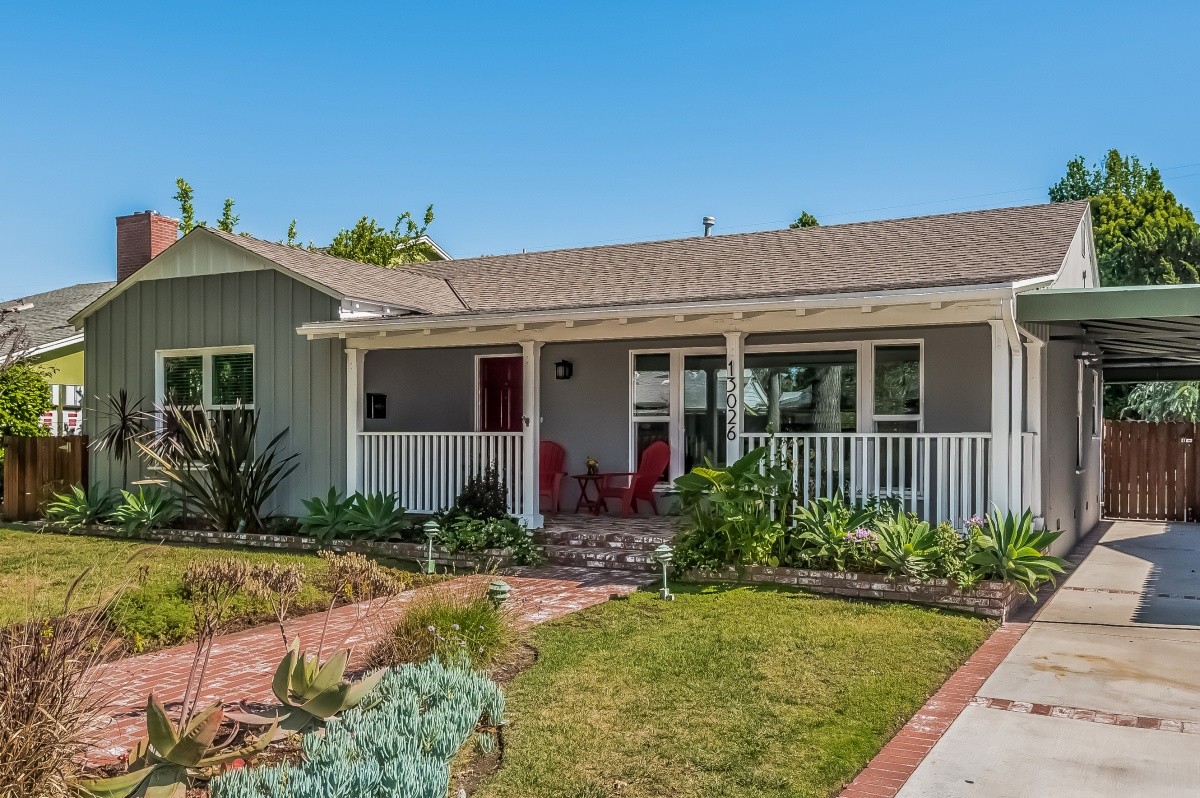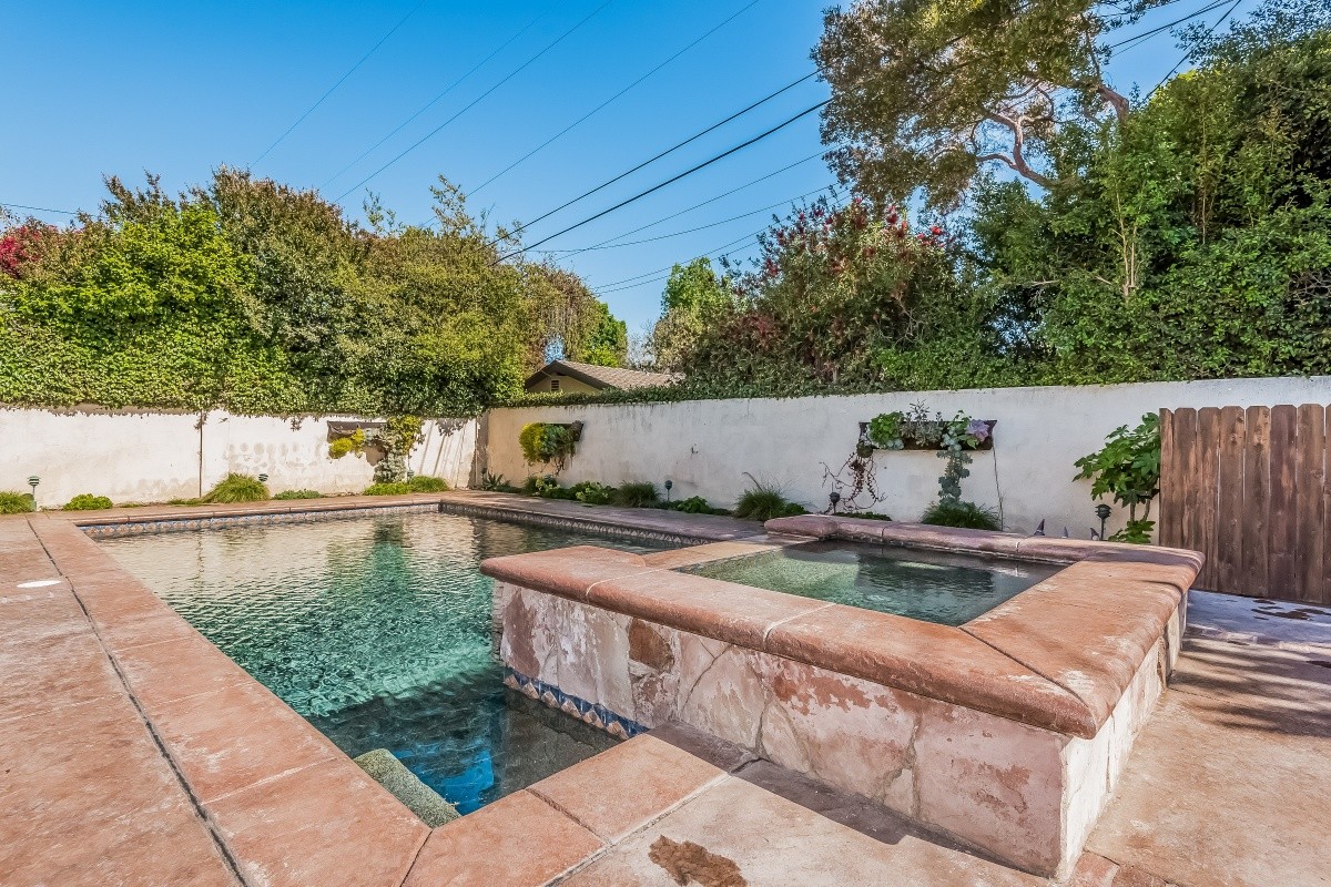 Beautifully updated 3 bedroom, 2 bath home with a sparkling pool and spa, located in the highly sought after Hidden Woods area of Sherman Oaks. A manicured front walk and expansive front porch lead into the spacious living room, which features an oversized picture window, wood floors, and crown moldings. Maple cabinetry, GE Café appliances, and a custom pantry accent the tastefully remodeled kitchen. An open dining area leads out to fabulous outdoor amenities: a covered patio, built-in BBQ with bar and refrigerator, grass yard, and saltwater Pebble-Tec pool and spa. The third bedroom, currently used as an oversized den/ rec room, could be easily converted back to a master suite, and boasts wood-beam ceilings, a fireplace, and updated bath. Other upgrades include newer doors and Milgard windows throughout, Lutron lighting control, multi-zone audio throughout the house and back yard, and a 2-car garage with extra attic storage. Close to great schools, shopping, dining and entertainment.