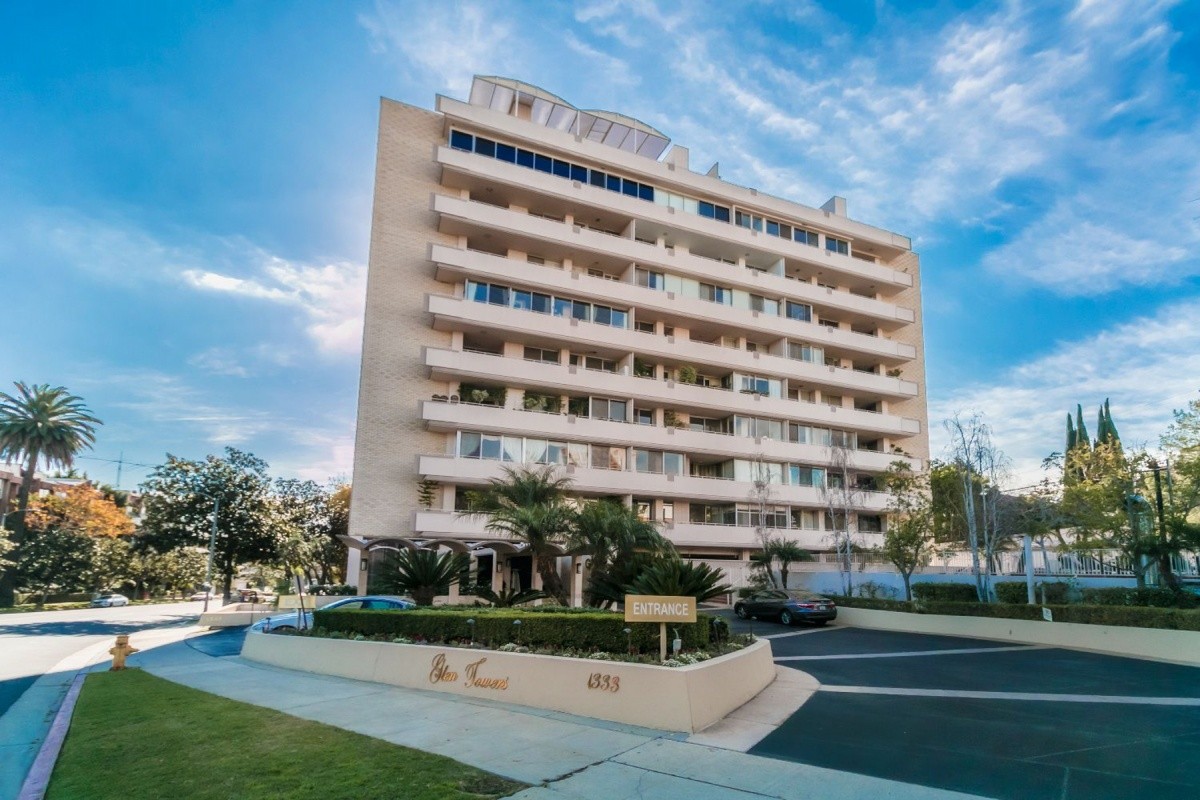 Prime fixer candidate, with sweeping South-facing views from the Century City skyline all the way out to the Pacific Ocean and Catalina! Located in a prestigious, full-service building between the Wilshire Corridor and newly reimagined Westfield Century City mall, the oversized 1-bedroom, 2-bath unit boasts a formal entry and soaring ceilings in the master bedroom and entertaining rooms. Floor to ceiling windows and sliding doors showcase the views and provide an abundance of natural light throughout the living space. A massive balcony opens out from the living room, dining area, and master bedroom to provide endless indoor/ outdoor entertaining and relaxation options. Other features include a separate service entrance into the unit, gas fireplace, and numerous built-ins. The Glen Towers building epitomizes a full service lifestyle, offering residents a 24-hour doorman and front desk staff, valet parking, pool, gym, and numerous utilities and services that are included in the monthly HOA dues.