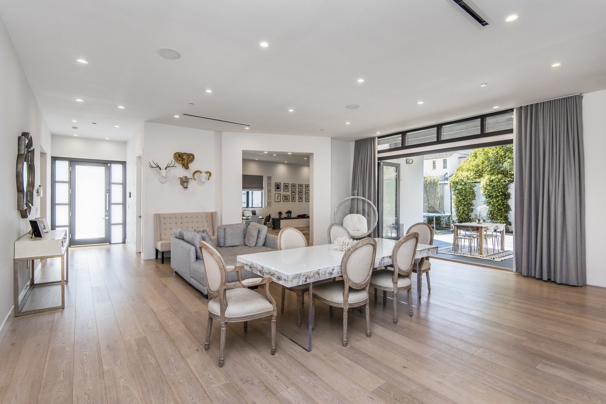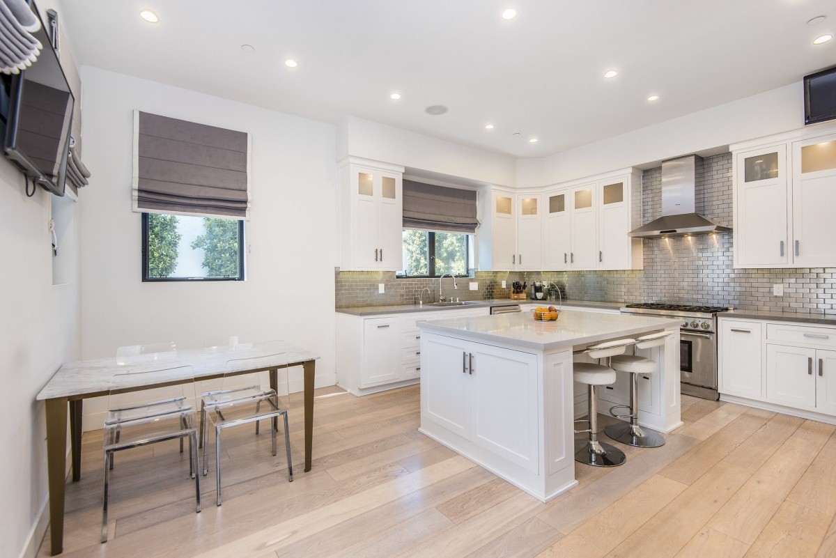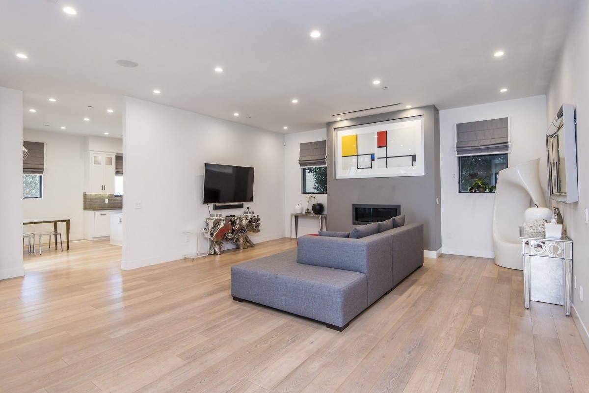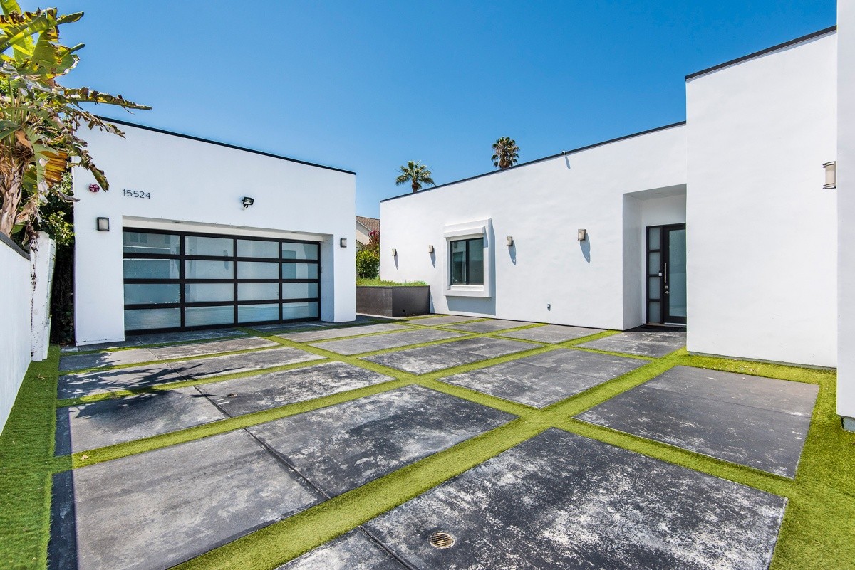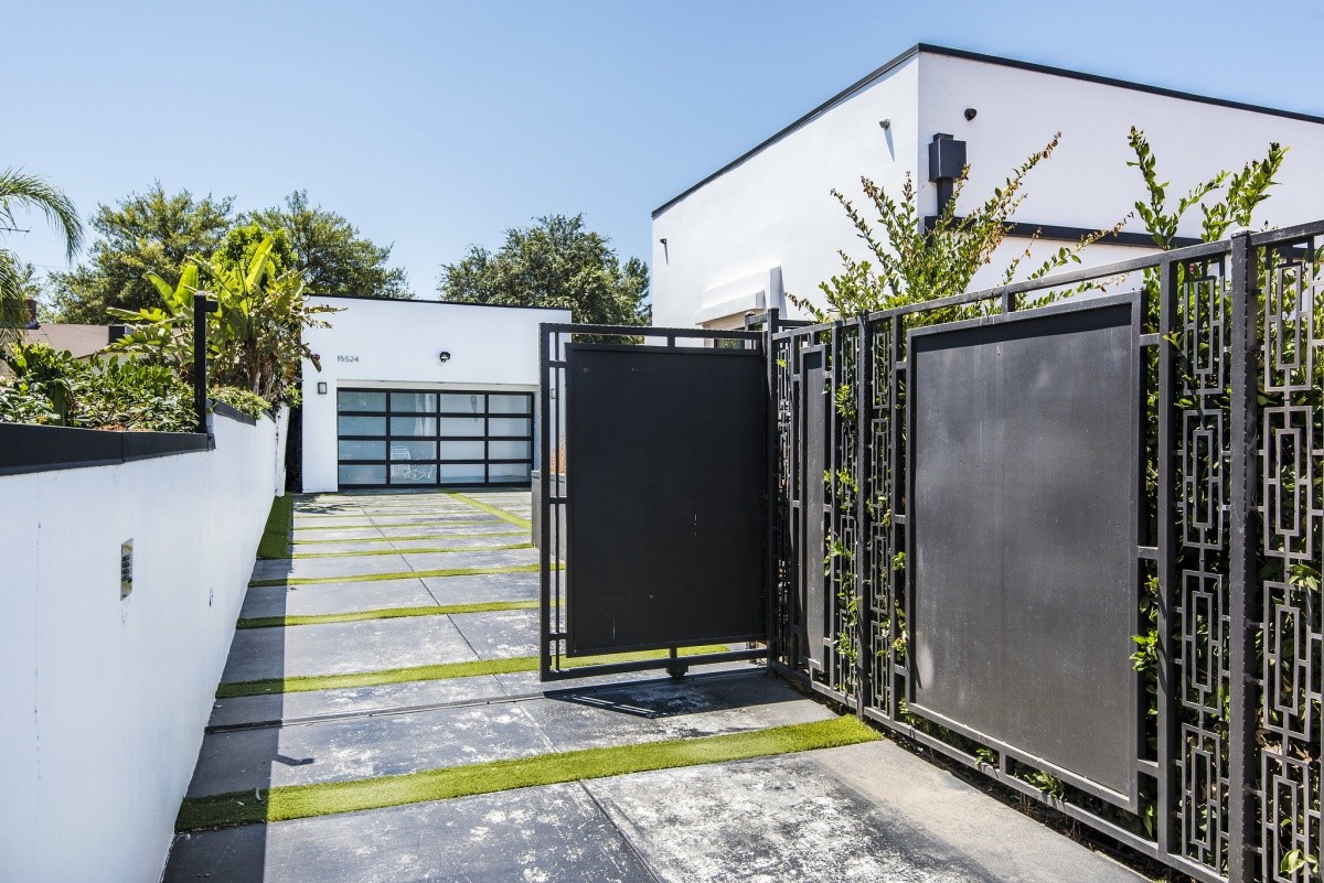 Gated ultra-modern showplace, newly completed in 2015 and located in the coveted Hesby Oaks K-8 school area. Soaring ceilings and dramatic volume abound throughout the one-level luxury residence, which features crisp white walls, recessed lights, and wide-plank wood floors. A massive open concept entertaining space offers endless possibilities for dining, living, and family room layouts, and opens out to the spacious lounge patio with built-in barbecue. The gourmet kitchen boasts Thermador appliances, quartz counters, a large center island, and breakfast area. Private and serene, the master suite includes two fully customized walk-in closets, and a spa-like bathroom with dual vanities, soaking tub and oversized shower. Other amenities include a laundry room, dual zoned HVAC, tankless water heater, security system, wiring for sound and closed circuit TV, skylights, low-maintenance grounds, and a two-car garage. Located moments away from world-class shopping, dining, and entertainment.