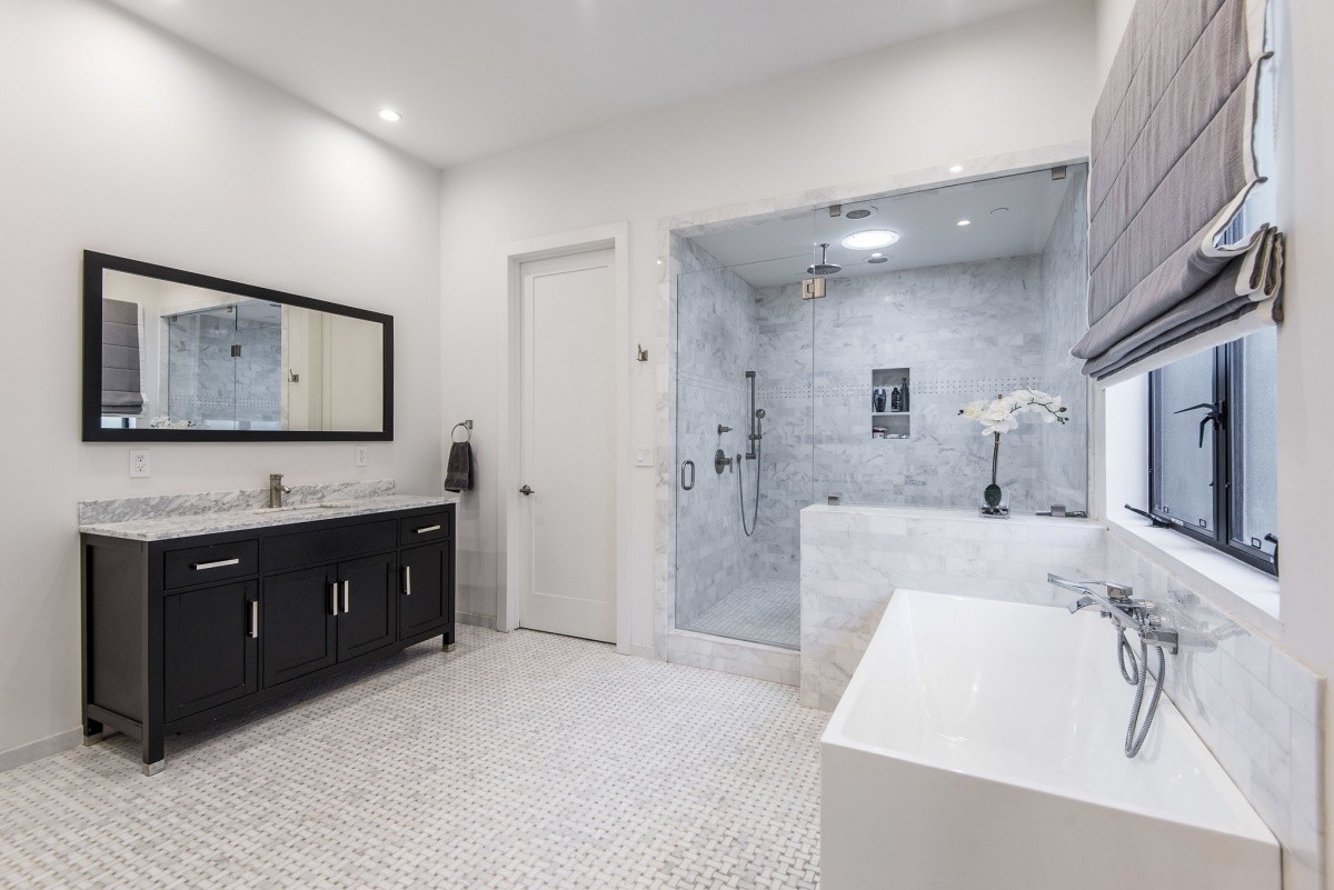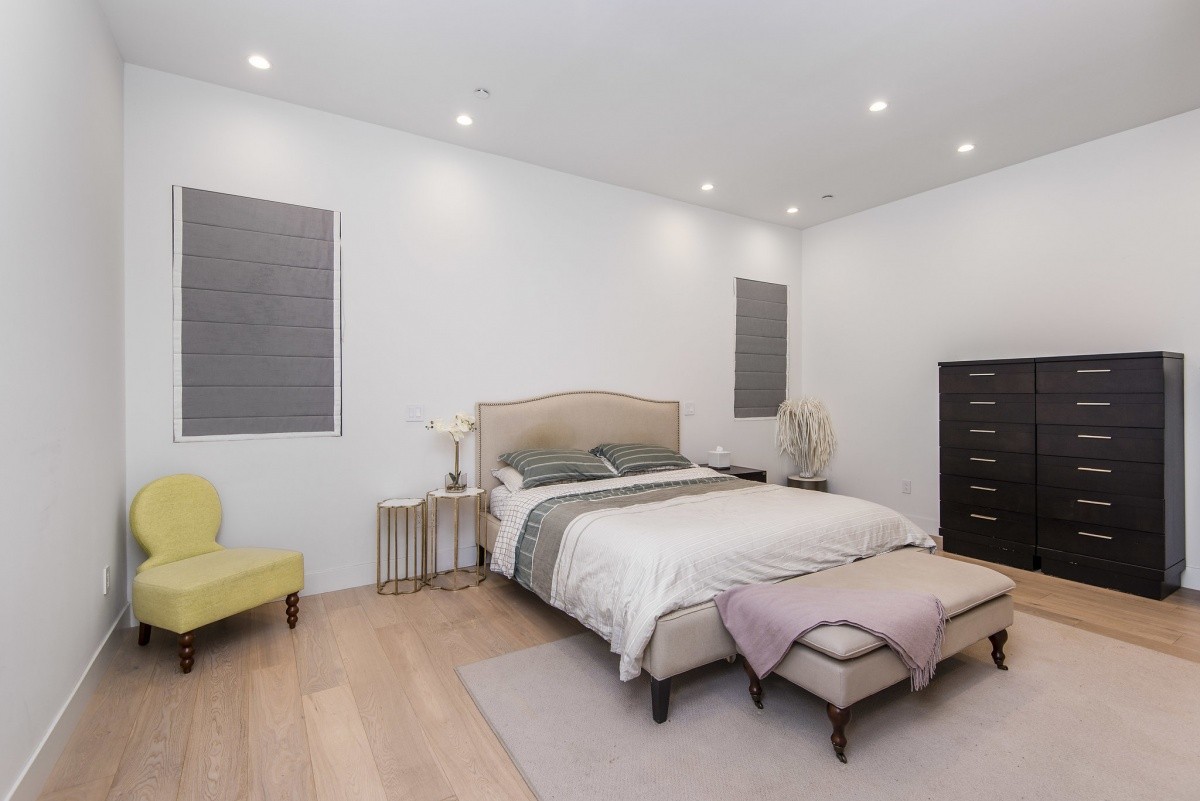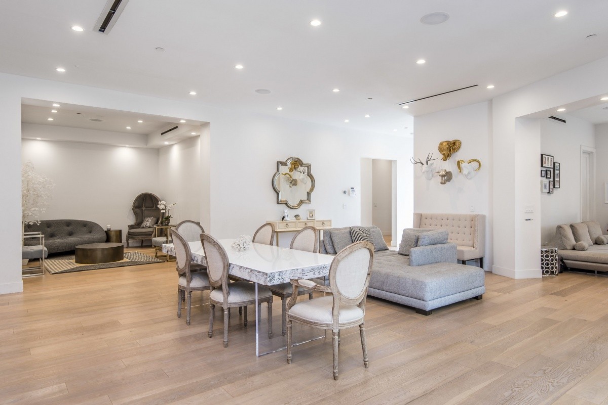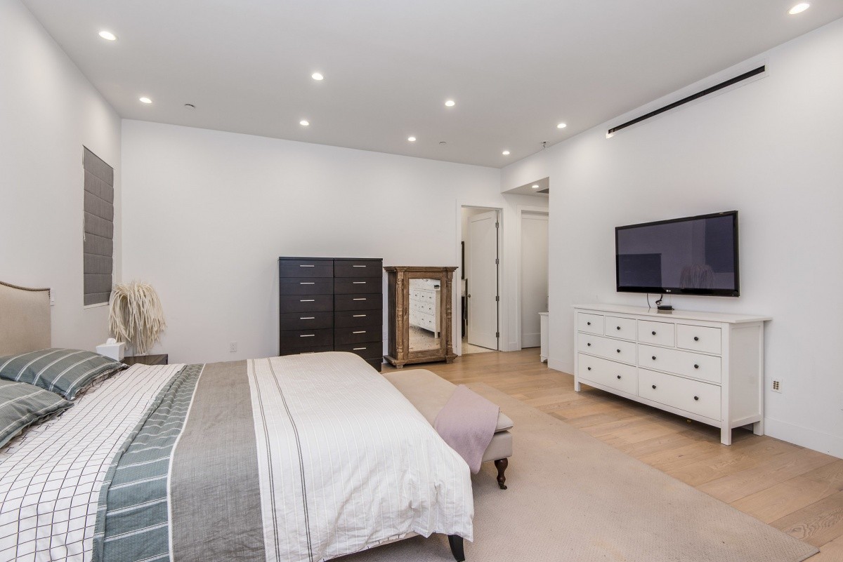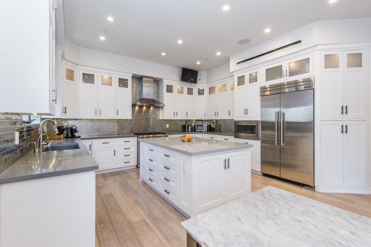 Gated ultra-modern showplace, newly completed in 2015 and located in the coveted Hesby Oaks K-8 school area. Soaring ceilings and dramatic volume abound throughout the one-level luxury residence, which features crisp white walls, recessed lights, and wide-plank wood floors. A massive open concept entertaining space offers endless possibilities for dining, living, and family room layouts, and opens out to the spacious lounge patio with built-in barbecue. The gourmet kitchen boasts Thermador appliances, quartz counters, a large center island, and breakfast area. Private and serene, the master suite includes two fully customized walk-in closets, and a spa-like bathroom with dual vanities, soaking tub and oversized shower. Other amenities include a laundry room, dual zoned HVAC, tankless water heater, security system, wiring for sound and closed circuit TV, skylights, low-maintenance grounds, and a two-car garage. Located moments away from world-class shopping, dining, and entertainment.