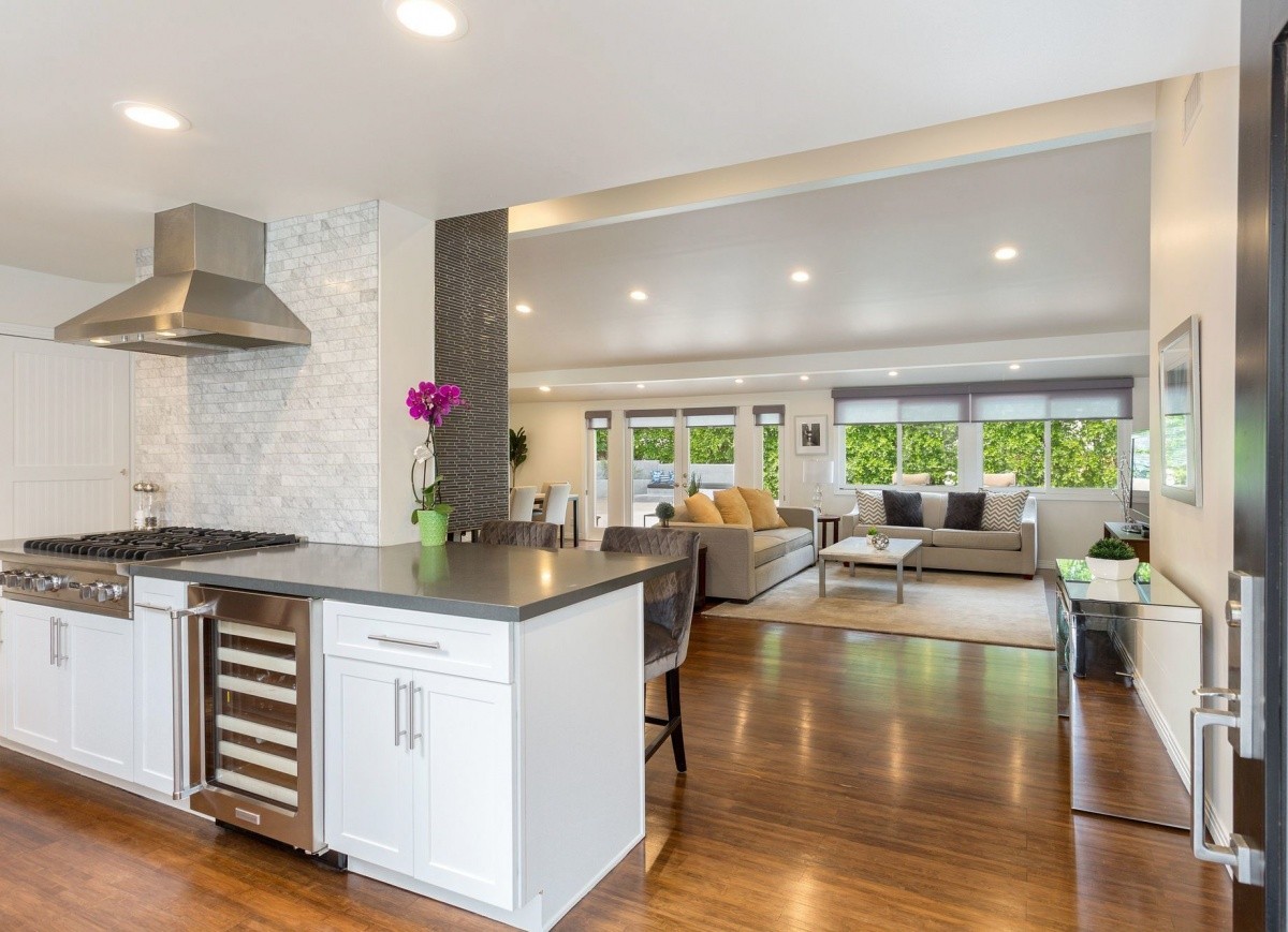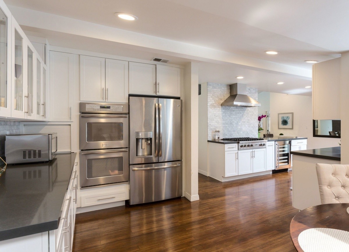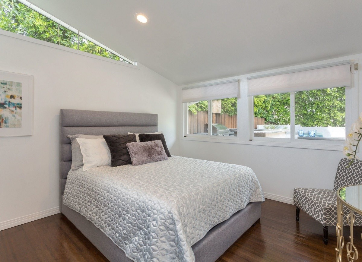 Stunning single-story residence with a shimmering pool, located South of Ventura Boulevard in the heart of Encino. Gated and hedged for privacy, the voluminous open floor plan throughout the 3 bedrooms and 2 bathrooms represents the perfect merging of traditional and modern styles. Well-crafted interior finishes and custom designed skylights that provide a soft natural light throughout. The gourmet chef’s kitchen includes newer double ovens, a Viking range, new under counter wine refrigerator, Bosch dishwasher, and soft-closing drawers. Other features include newly stained bamboo floors, new custom window shades, private access side doors into the spacious master bedroom suite, dual pane windows, recessed lighting, and a new garage door and keypad. Two sets of French doors open out from the living space to the beautiful backyard pool and patio, complete with built-in BBQ entertainment center and fire pit with surrounding bench seating. Truly the epitome of Southern California living, located seconds away from wonderful shops, fine dining, top-rated Lanai Elementary School, parks, and entertainment!