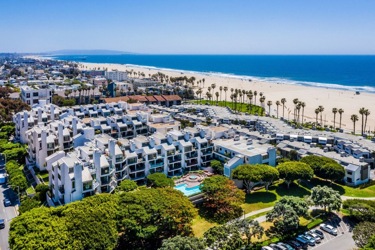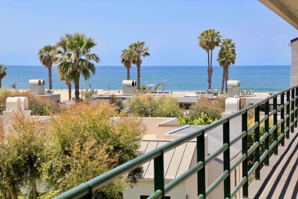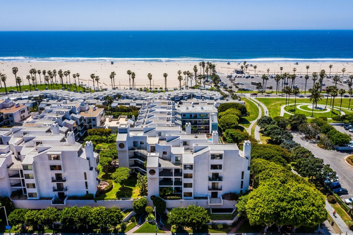Beachfront living at its finest in this stunningly updated 4th floor residence with views of the pool, palms, and ocean beyond. Beautifully designed for upscale entertaining and everyday living, the spacious living room features built-in shelves and cabinets, a marble adorned fireplace, built-in speakers, a fabulous bar area with bottle storage, and access out to the private balcony for al fresco dining and enjoying picture perfect sunsets. The open dining area flows effortlessly into the gourmet kitchen, which boasts casual bar dining, marble countertops, stainless steel appliances, a wine cooler, and a functional work space. The sumptuous master bedroom includes a walk-in closet, and a spa-like bath with dual sinks and separate tub/ shower. A second bedroom, guest bath, and in-unit laundry complete the living space. Also included are two SxS parking spaces, plus an additional storage locker. Prestigious Sea Colony II is a 24-hour guard gated community offering world class resort amenities: heated pool, 3 spas, gym, rec room, onsite manager, and a private walk to the sand. All located seconds away from Main St. shops and restaurants, Abbott Kinney, tennis and basketball courts, luxury malls, the Metro, and more!