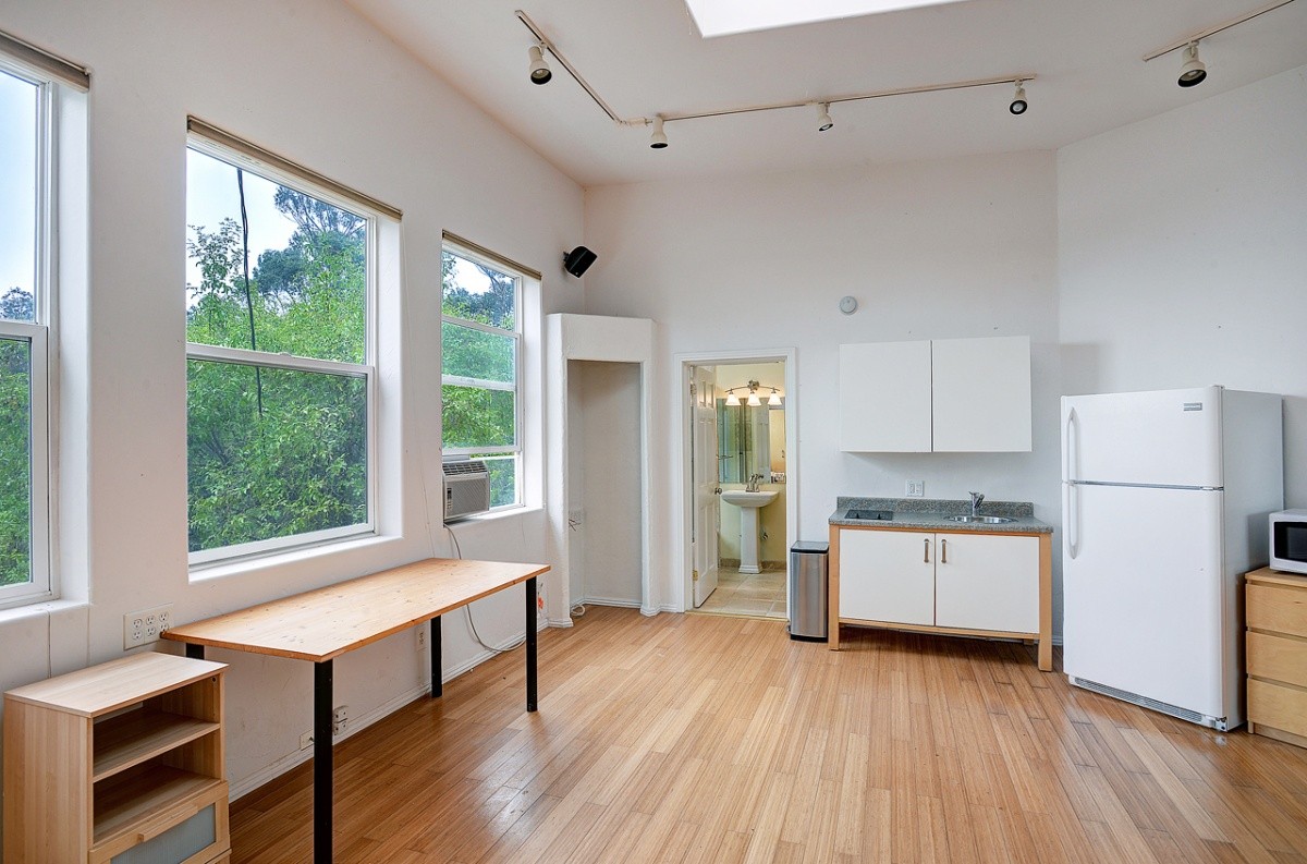 Nestled on a quiet dead-end road, this quintessential Hollywood Hills retreat offers a verdant canyon view, a private flat yard area, and a separate guest studio with kitchenette and bath. Tastefully remodeled throughout, the home boasts walls of glass that offer abundant natural light and showcase the yard and view. The open interior features a fireplace, skylights, and ceramic tile floors. Granite counter tops and stainless steel appliances grace the kitchen space. The large bedroom has 'wood' ceramic floors and French doors out to the yard. There is a one car garage, plus a laundry area. Centrally located to studios, restaurants, and shopping in the Valley and Hollywood, and freeway close to downtown LA.