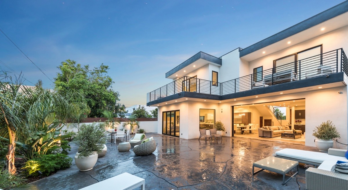 Represented buyer. Completely reimagined custom modern home with tremendous volume and space throughout, plus incredible second story views! Designed for ultimate entertaining and effortless indoor/ outdoor living, the gourmet kitchen with massive island flows directly into a stunning living room with fireplace and wine bar. A fabulous den also adjoins the chef’s kitchen, which boasts Thermador appliances, abundant storage space, glass tile backsplash, and other custom finishes. Telescoping Fleetwood doors in all entertaining rooms lead out to a massive backyard with full wet bar. Upstairs, the master suite is a zen retreat unto itself, featuring a spa-like bath with dual vanities and free-standing modern tub, incredible closet space, and private access to an outdoor balcony. All of today’s must-have luxury amenities are fully integrated, including central air and heating, garage parking, wiring for security video, sound speakers, cable, intercom and internet. Beautifully designed, abundantly spacious, and ideally located near all Westside attractions.