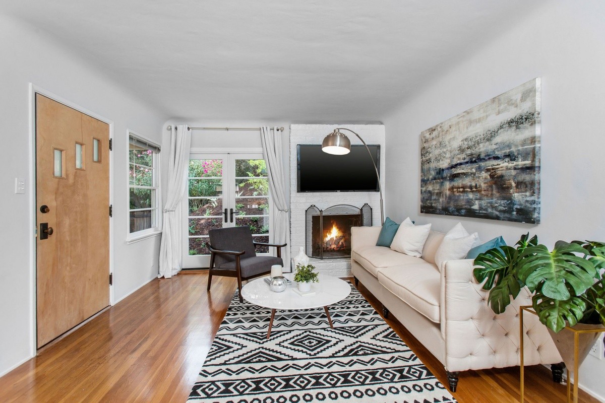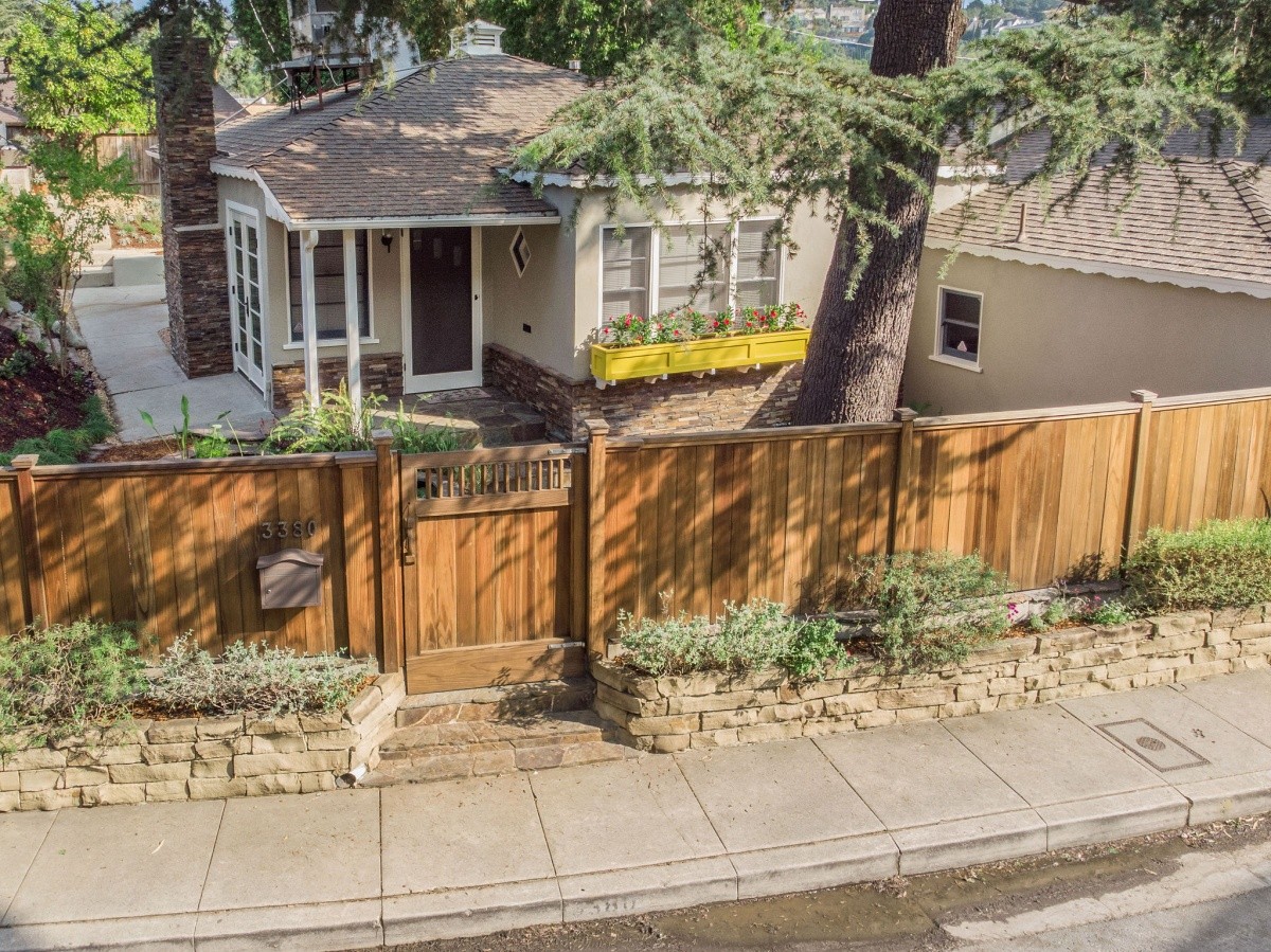 Ultra-charming 1940 traditional with a private gated entry and stunning front, side and rear yards! Wonderful character details abound throughout the bright and cheerful interior space hardwood floors, coved ceilings, arched doorways and French doors. Ideally designed for indoor/ outdoor living, nearly all rooms feature access out to the fabulous outdoor areas. Other features include spacious bedrooms, an open kitchen and dining area, central AC and heating, a functional garage, plus sweeping patio areas, sprawling terraced gardens with California native plants, and a peaceful water feature for outdoor enjoyment. A beautiful and relaxing hills retreat, just moments away from studios, downtown, popular hangouts, dining and shopping!