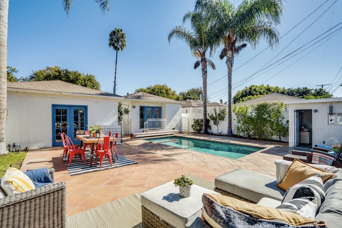 Welcome to this meticulously maintained and upgraded pool home nestled on a gracious lot, in a wonderful Culver City neighborhood close to all points of interest! Boasting over 1,700 sq ft of interior living space and 4 bedrooms plus 2 full bathrooms, the open living plan offers endless layout options. At the heart of the home is the chef’s kitchen with stainless steel appliances and tons of functional countertop and cabinet space. A sprawling family room with wood beam ceilings and a dining area extend off the kitchen, with rich hardwood floors gracing those spaces and the formal living room with bay window. All bedrooms run along one side of the house for optimal privacy, and the primary bedroom features French doors opening onto a sparkling saltwater pool and backyard, perfect for entertaining. The rear yard also includes a pool bath and shower, plus a detached garage with wall-to-wall storage that is perfect as-is, or can be ideal for an at home office or potential for ADU. Centrally located to all of Culver City's parks, restaurants, coffee shops and within the highly desirable Culver City school district.