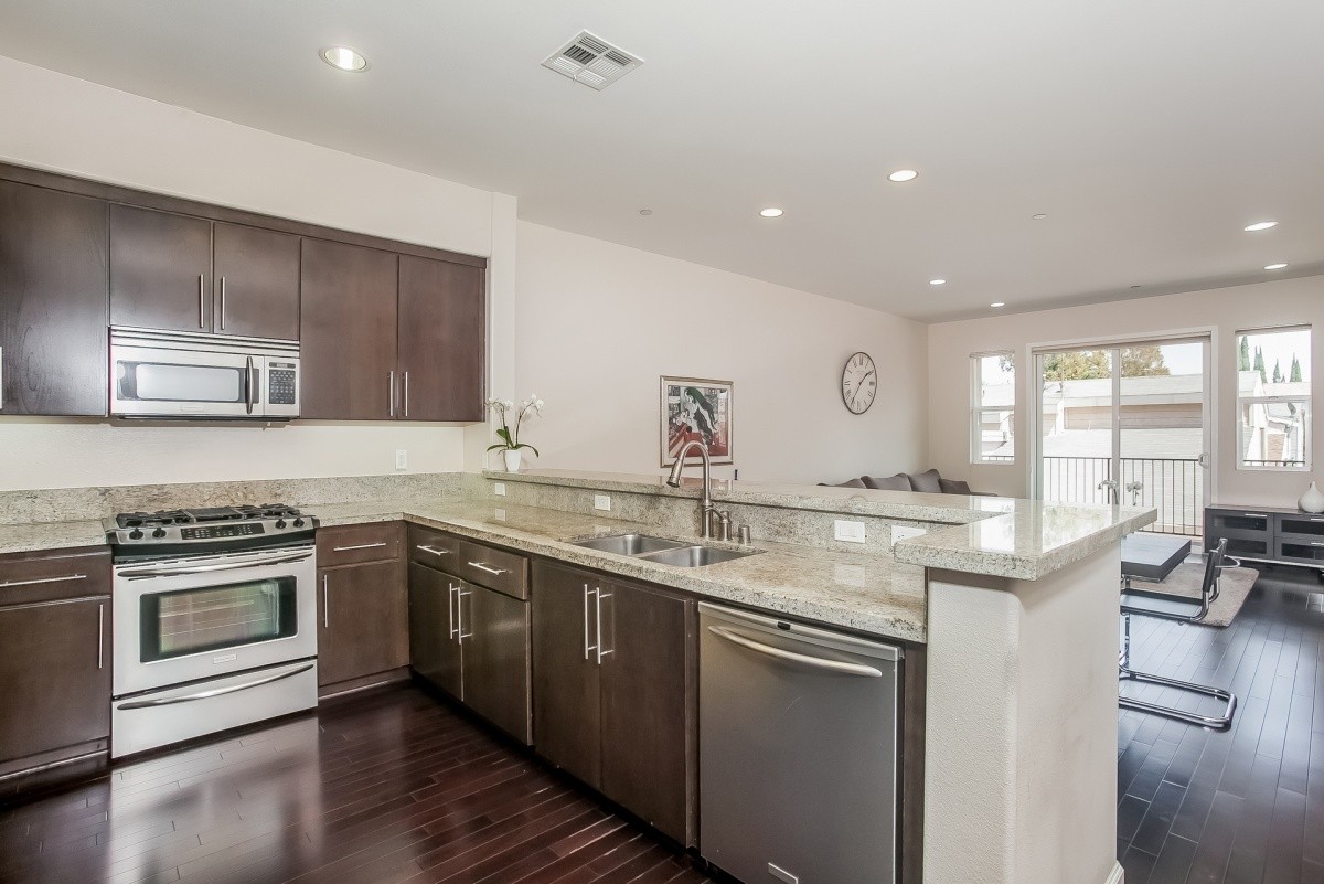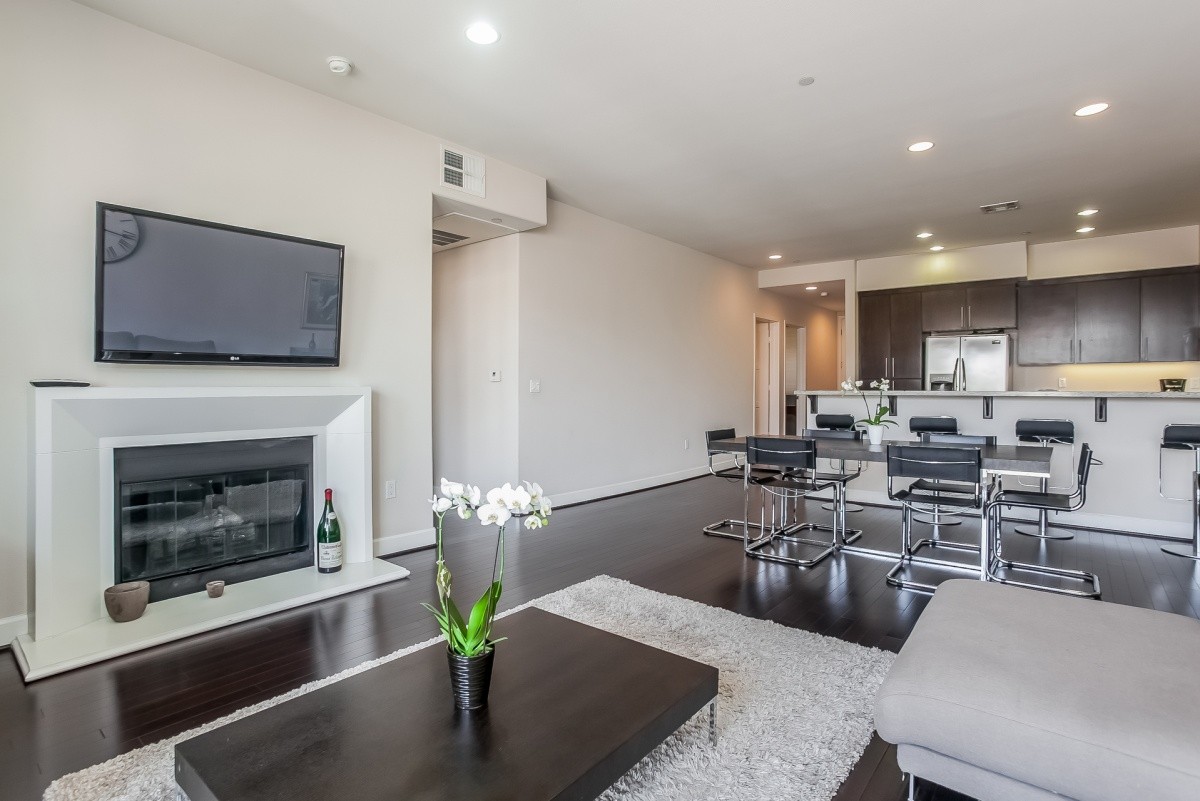 OFF MARKET OPPORTUNITY. Built in 2009, this sleek and chic 2-bedroom, 2-bath condo features soaring ceilings, incredible natural light, in-unit laundry, and fabulous modern finishes throughout the 1400+ square feet of living space. The entry flows effortlessly into a gourmet kitchen with granite counters, stainless steel appliances, and casual bar seating. An open dining area merges seamlessly with the sumptuous living room, featuring a gas fireplace and direct access out to a private balcony. The sprawling master suite also opens out to the balcony, and includes an enormous walk-in closet and spa-like bath with double vanity. A spacious guest bedroom, beautiful guest bath, and gated parking complete this incredible property. Prime location, moments away from freeway access and all Studio City, Toluca Lake, and NoHo Arts District attractions.