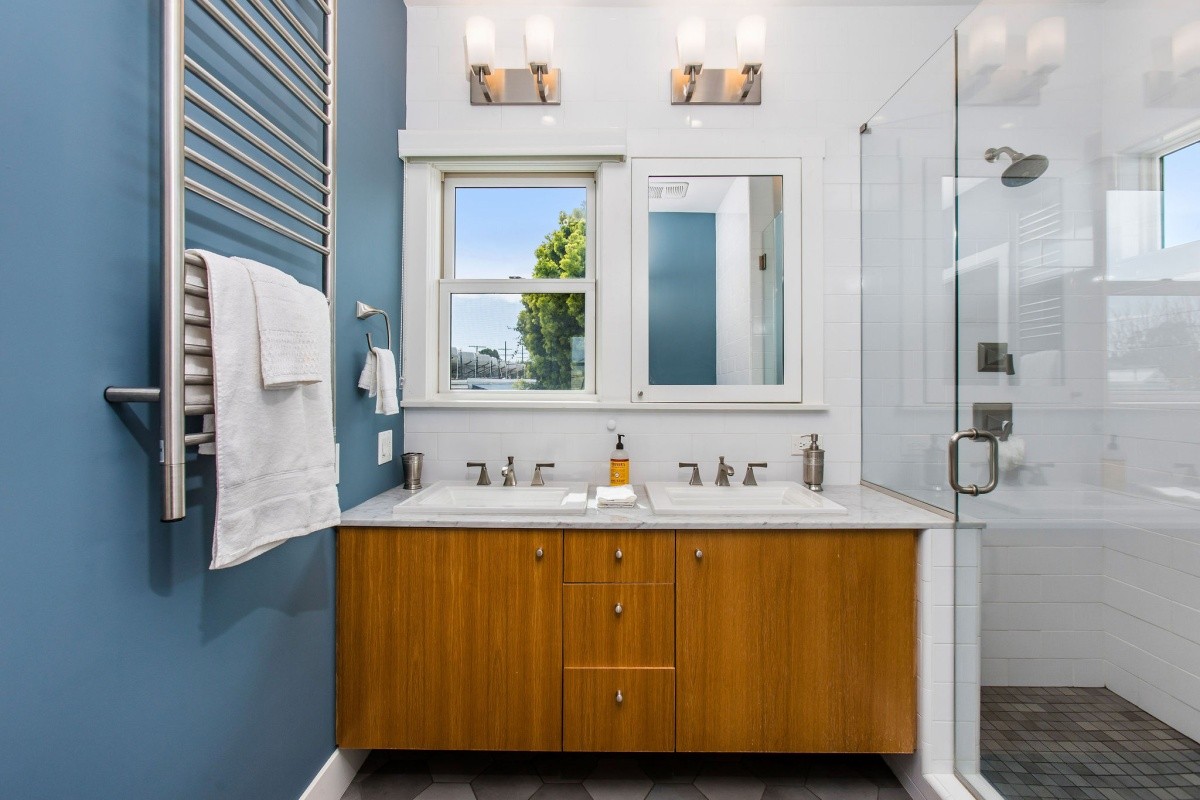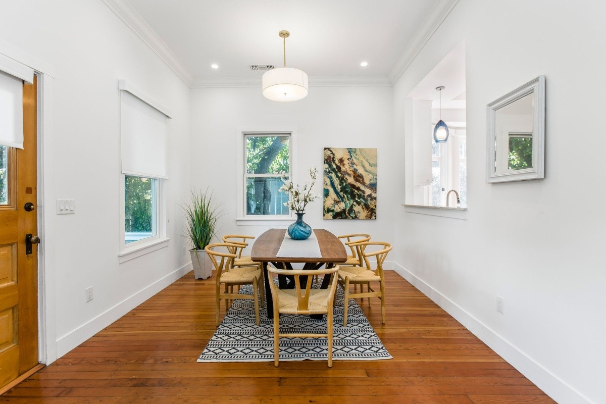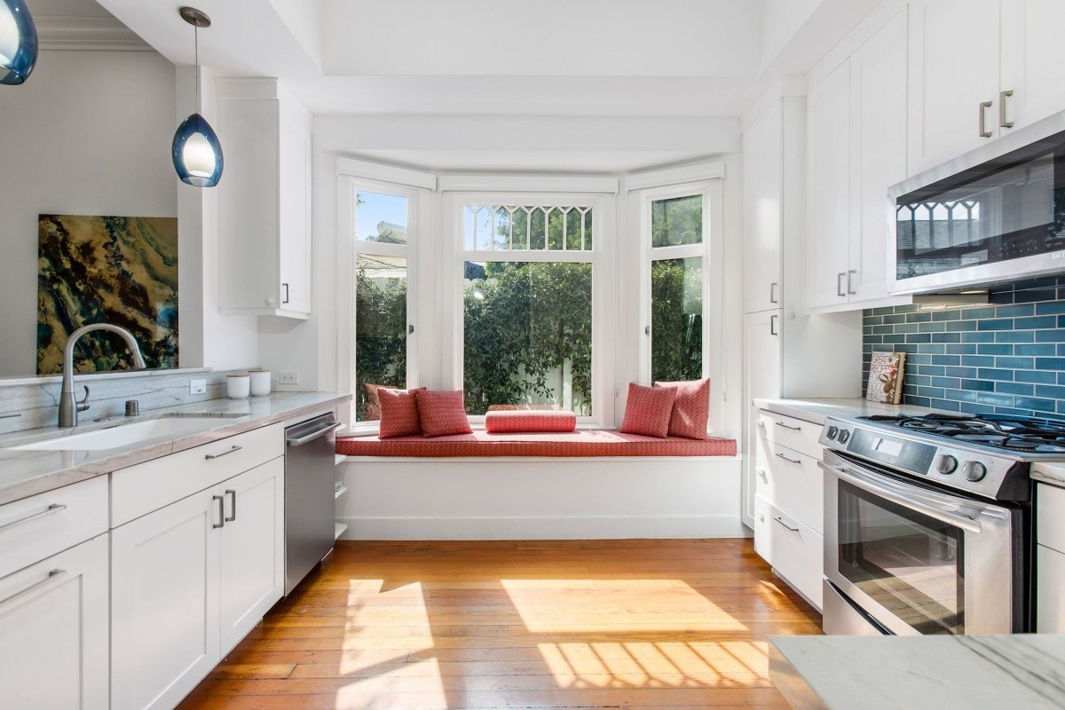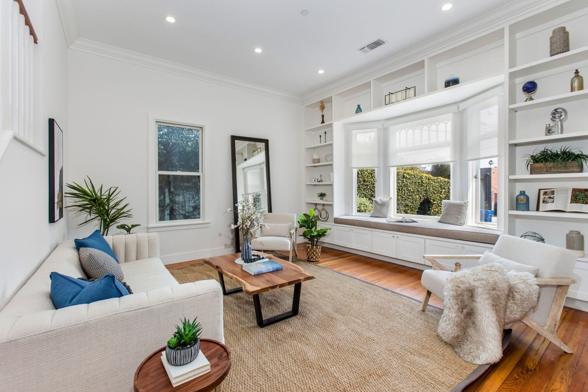 Epitomizing the essence of SoCal beach living, this cheerful and charming retreat resides several blocks from the beach and Main Street, and has been meticulously and lovingly renovated for effortless, enjoyable modern living. Up the front walkway through the hedged and gated front yard, a picture-perfect porch welcomes residents and visitors inside the home. The thoughtfully expanded residence features beautifully designed interior spaces with timeless character accents and useful nuances throughout, beginning in the light and bright living room that features a bay window with bench seating surrounded by floor to ceiling built-in shelving. The living room opens seamlessly into the dining room that's perfect for formal or everyday casual living, while the gourmet chef's kitchen features an open pass-through to the dining room, a second bay window and sunny sitting area, stainless steel appliances, and a stunning tile backsplash. One bedroom and a spacious den/ office reside downstairs, the latter of which can also serve as an optional fourth bedroom and opens out to the back deck. Two comfortable and inviting bedroom suites reside upstairs, both with en-suite baths, and the primary featuring soaring cathedral ceilings and a large walk-in closet. Other amenities include an owned solar system, newer central heating and air, tankless water heater, and two dedicated lines for EV charging. Perfect for indoor/ outdoor living, the property features numerous balconies and other outdoor spaces including a rear yard and deck with a sprawling seating area and projection wall setup for creating memorable evenings. Truly a rare opportunity to own a remarkable property in a prime beach location!