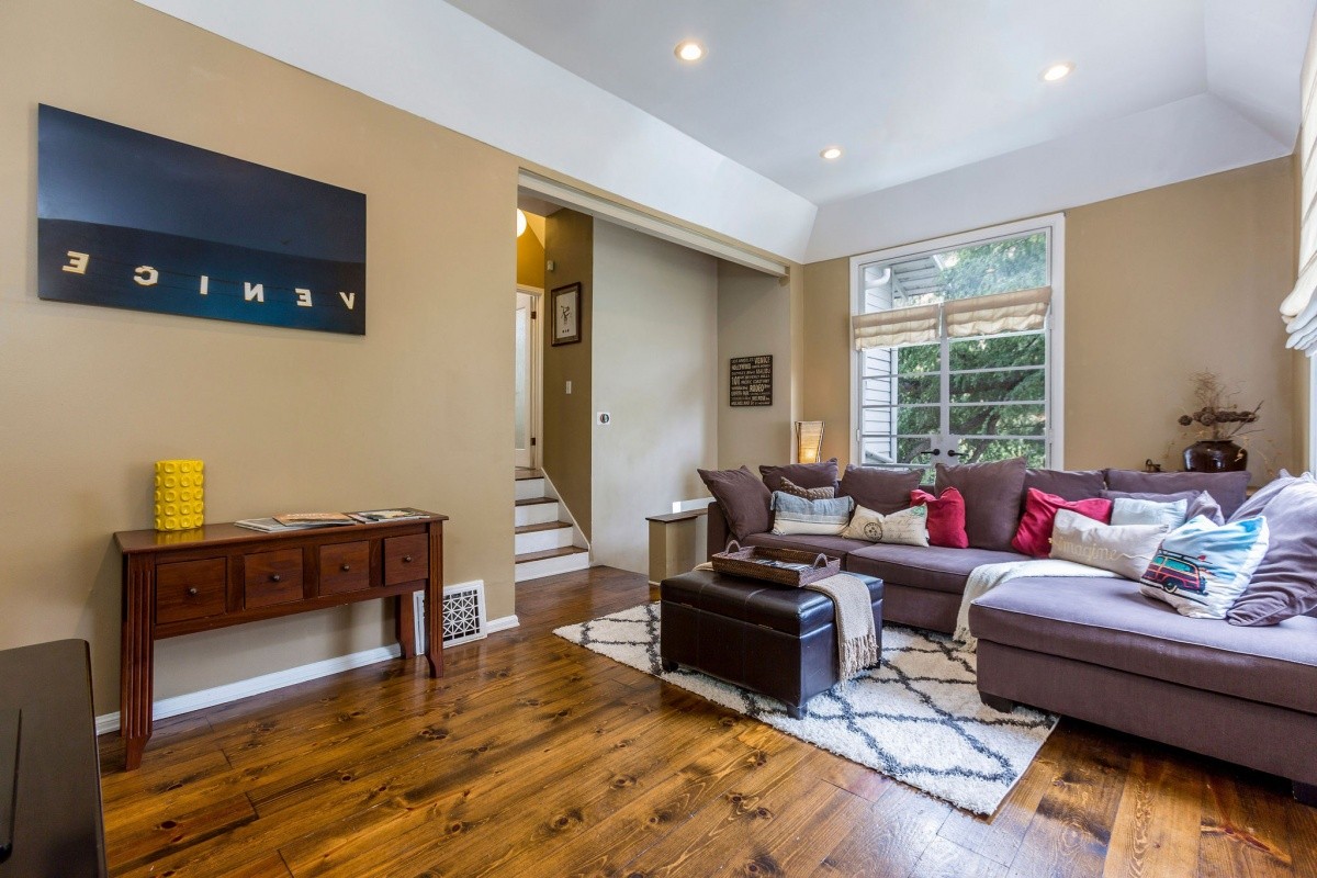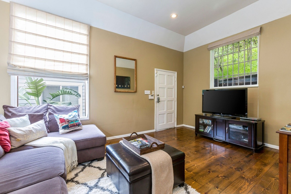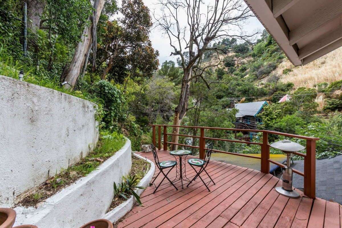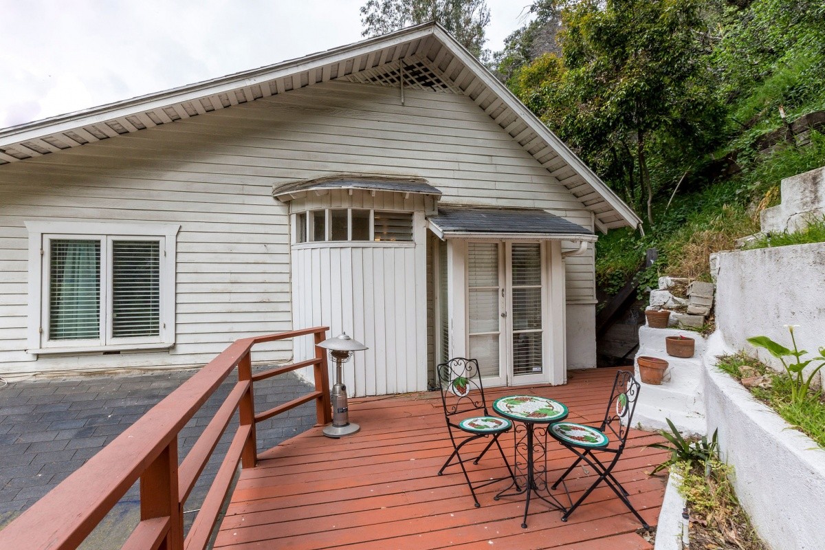 Quintessential 1920's Laurel Canyon charmer nestled among the trees, moments away from coveted Wonderland Elementary, the Canyon Store and tons of city and Valley attractions! Perched up above the street, the light and bright interior features warm wood floors, soaring ceilings, recessed lights in the living room, and an abundance of windows bringing the hillside scenery into the living space. French doors open from one of the two spacious and inviting bedrooms out to a sprawling deck for outdoor relaxation. A well-appointed bath resides in between the two bedrooms. Downstairs, the dining area flows into the kitchen, which boasts stainless steel appliances and includes bar seating for casual dining. Steps away from the kitchen is a quaint patio with fountain and string lights - perfect for al fresco dining and entertaining. A flexible bonus room that could be an office or extra lounge space, laundry room off the kitchen, second bathroom, and 1-car finished garage complete the property.