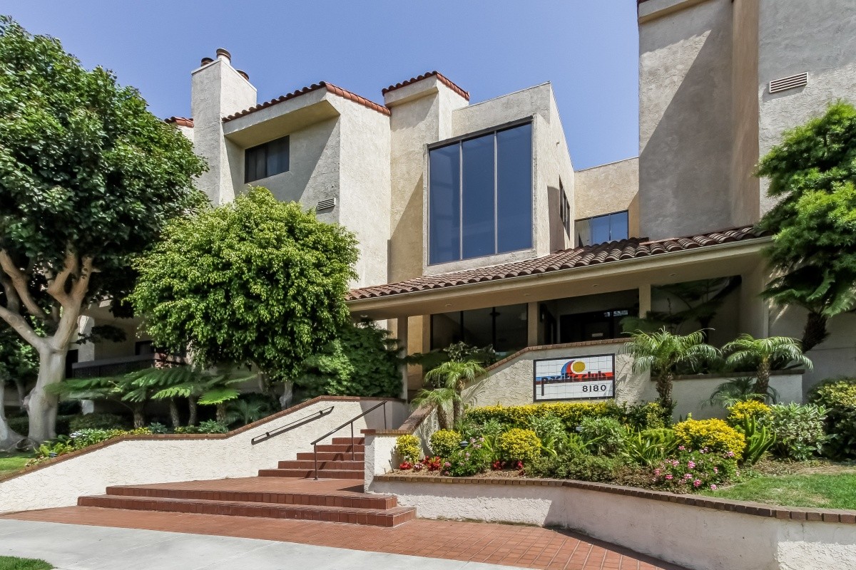 Great opportunity to own a turnkey Plan D corner unit in the wonderful Pacific Club complex. Spacious and open throughout, a formal entry leads into the inviting living room with gas fireplace. The updated eat-in kitchen flows effortlessly into the dining area, and the oversized master suite boasts a sumptuous bath with soaking tub and separate shower, great closet space, and a balcony. Other features include hardwood floors, recessed lighting, plantation shutters, a second balcony off the dining room, and side-by-side washer/ dryer in the unit. Fabulous community amenities include sparkling pools and spas, fitness center, racquetball court, pool table, ping pong, library, steam showers, saunas, and well-manicured grounds. Minutes to the beach, bike paths, local restaurants and LAX.