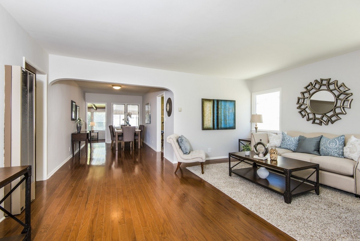 SOLD FOR OVER ASKING, MULTIPLE OFFERS RECEIVED! Lovingly maintained, upgraded, and expanded 1940s traditional featuring 2-bedrooms and a spacious and light family room/ den overlooking the sprawling back yard. Perfectly laid out for casual living and entertaining, the living room flows effortlessly into the dining area and kitchen. A built-in window seat adds charm and functionality to the large front bedroom, while the rear bedroom exudes privacy and tranquility. Natural light abounds in the expansive family room/ den, which boasts windows on every wall and stunning wood beam ceilings. Other features include a relaxing sunroom, brand new wood floors, numerous new windows, new paint throughout, tons of off-street parking, and a recently rebuilt oversized garage. Nestled on an extra large lot near top-rated schools, and all the best attractions and amenities that Burbank has to offer!