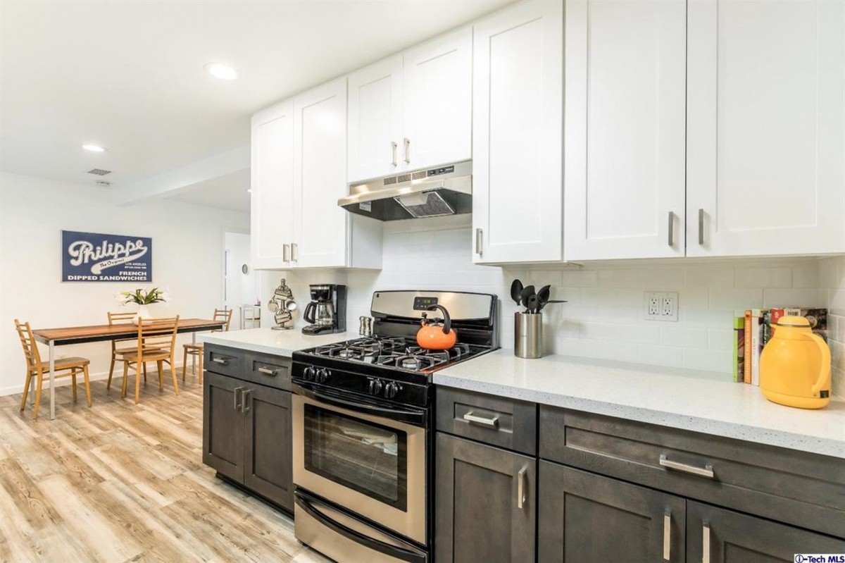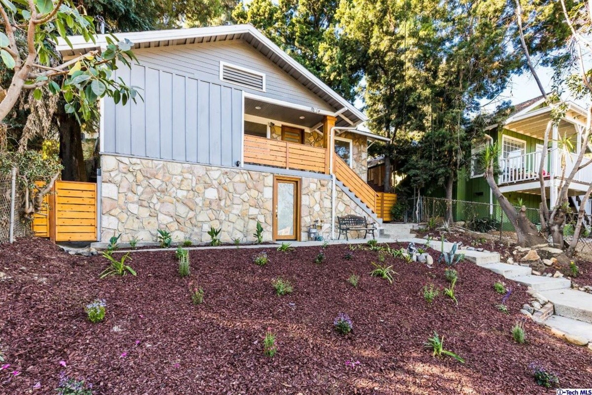 Nestled on a street-to-street lot in one of Highland Park’s most sought after neighborhoods, this retreat in the hills has been stylishly re-invented for modern living. Natural light abounds throughout the open concept living room/dining room and all new kitchen, which includes stainless steel appliances, new cabinets, and quartz counter tops. Sliding door access out to the back patio provides indoor/outdoor living and entertaining options. The versatile layout offers one bedroom and bath upstairs, and two additional bedrooms and a second bath downstairs. A separate entrance to the downstairs affords the possibility of utilizing that space as private studio or work space. Additional features include: laundry room off kitchen, new flooring throughout, new windows, central AC and heat, tankless water heater, copper plumbing, new electrical panel, and a large back yard with endless possibilities for terracing and gardening. Centrally located to all Eastside eateries and attractions, the Rose Bowl, Old Town Pasadena, and Downtown LA.