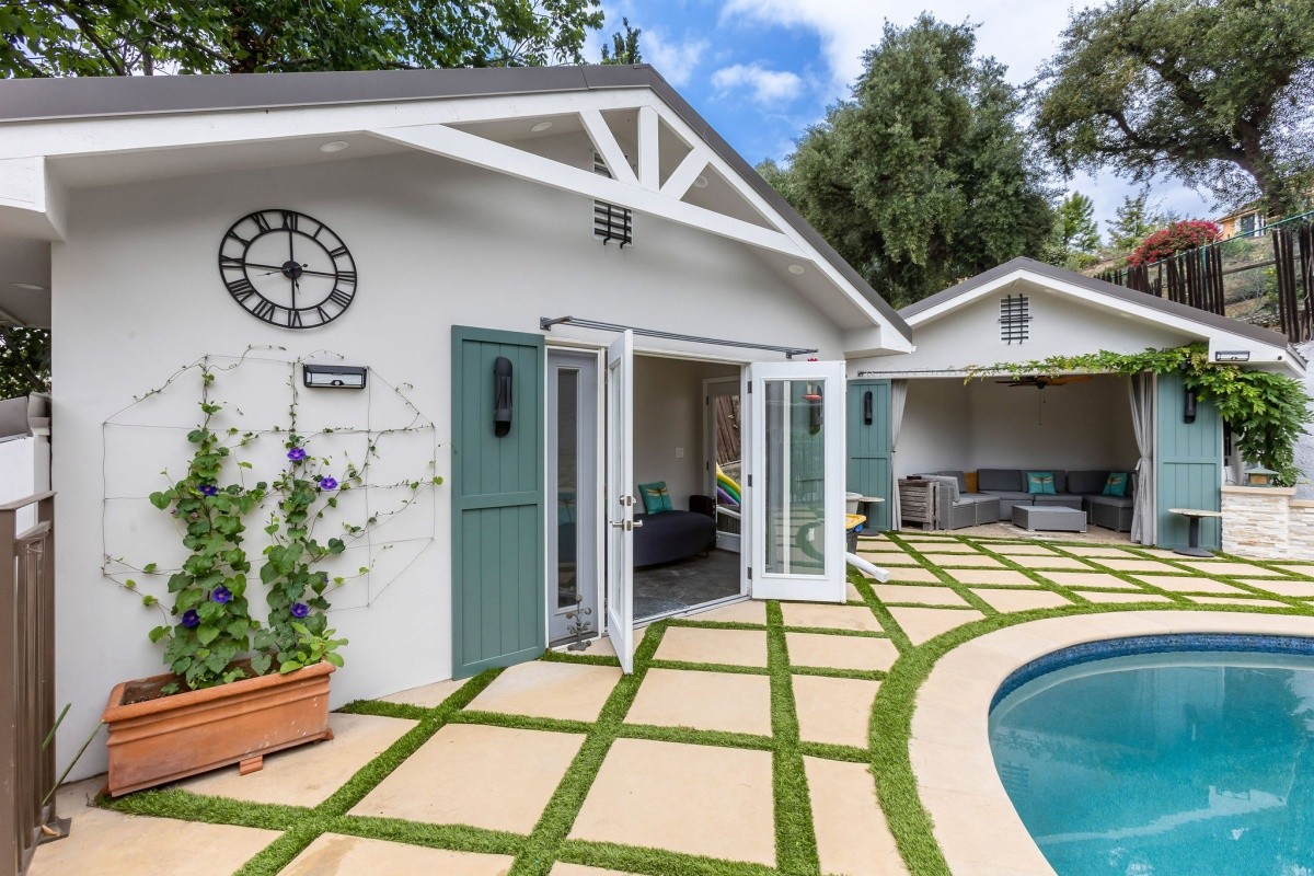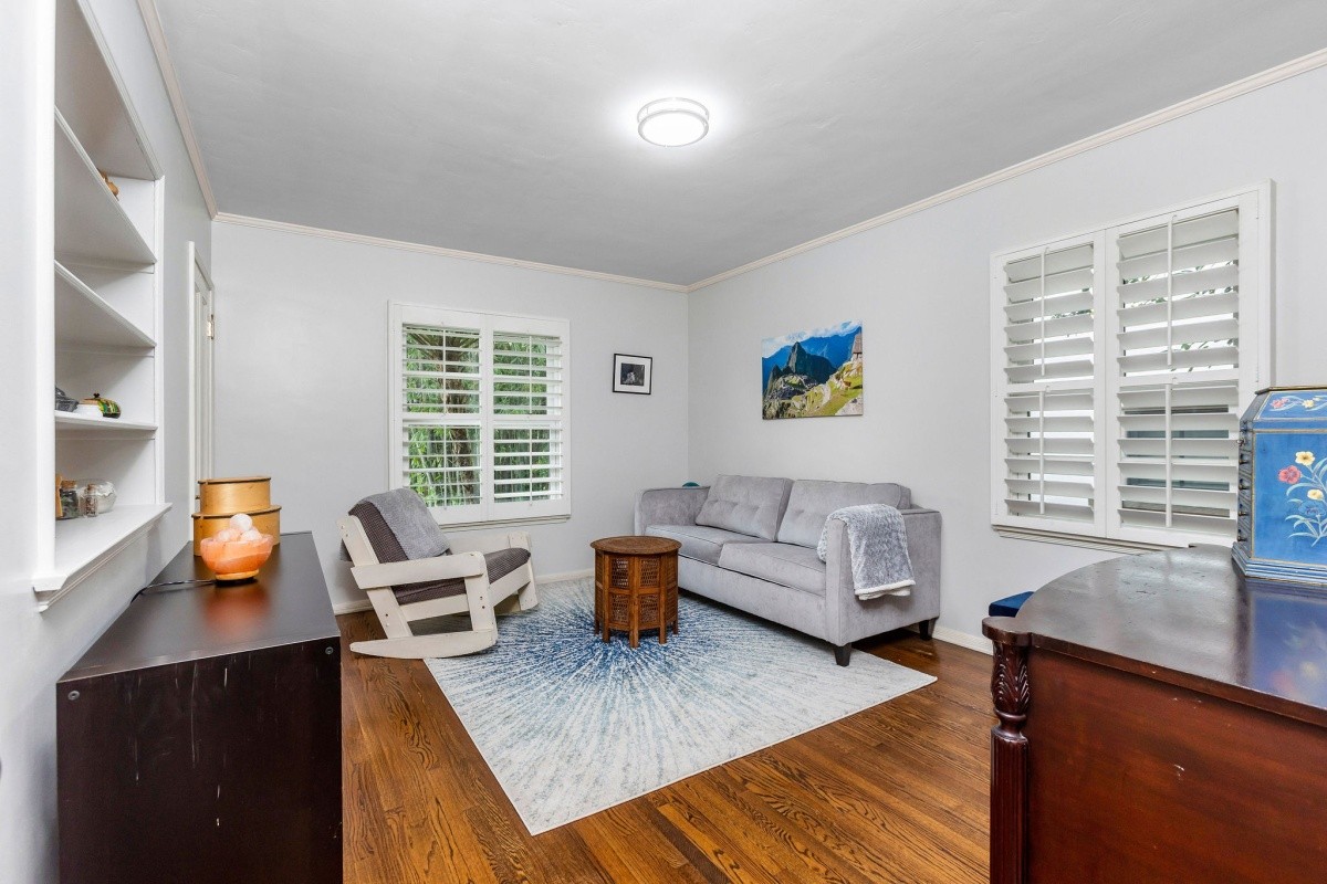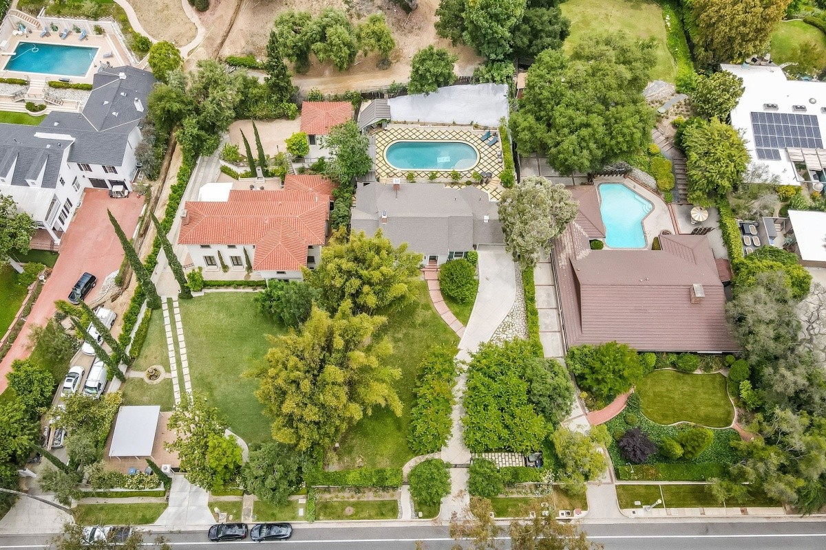 Set back behind stately gates and park-like grounds boasting mature trees and gently rolling lawns, this picturesque 1941 traditional with sparkling pool resides on over 1/3 acre usable lot and exudes timeless beauty and enduring appeal. Lovingly maintained and upgraded, the 3-bedroom residence features glossy hardwood floors throughout the entertaining space and bedrooms, and a wonderfully flexible layout for entertaining or casual everyday living. The foyer opens into an elegant living room with fireplace, recessed lights, and crown moldings, and the entry also adjoins a formal dining room and convertible 3rd bedroom/ office space. The gourmet chef's kitchen with center island includes a Sub-Zero refrigerator/ freezer, granite counters, and classic 6-burner Wedgewood stove. Peaceful bedrooms provide calming spaces for repose, and are complimented by tastefully appointed baths. The spacious family room with fireplace and gorgeous wood built-ins opens out to the amazing backyard oasis, complete with huge pool, sun deck, pool/ exercise room with 3/4 bath, cabana, and outdoor kitchen with stainless steel appliances and granite counters. Surrounded by multi-million dollar estates, endless possibilities abound for enjoying this charming home as-is, adding on, or redeveloping a brand new masterpiece.