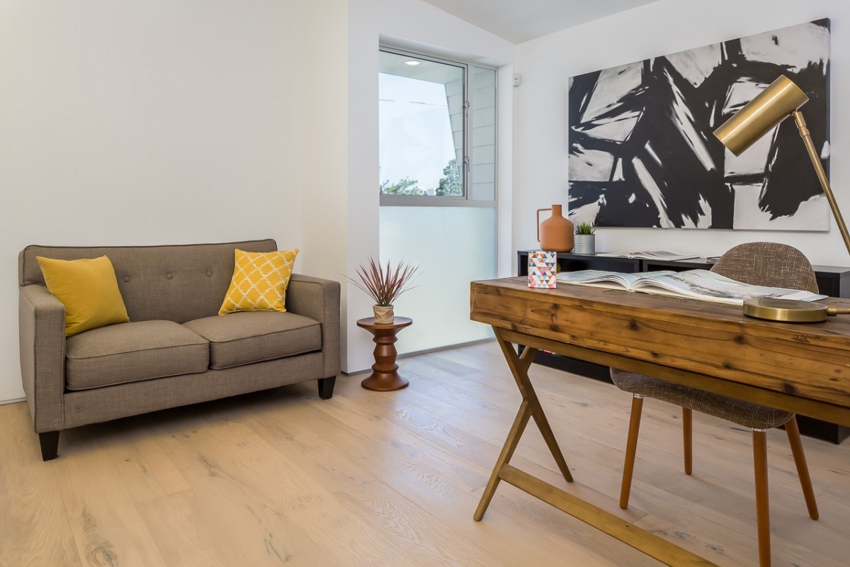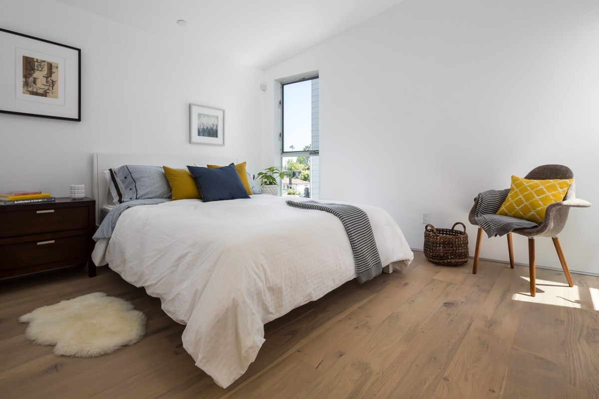 Clean lines, soaring spaces, and dramatic architectural elements permeate this brand new custom home located near tons of Santa Monica and Westside attractions. One of four stand-alone modern residences dubbed the Hangar 4 homes, 12109 Ocean Park pays homage to the history of the site, aerospace industry, and nearby airport. Yet the residence is completely forward looking in design and livability. Free-form ground level living areas with soaring walls of glass give way to private bedrooms and deck spaces upstairs. The open kitchen features Bosch appliances, plus a movable island for casual dining and entertaining. Minimalist landscaping ensconces the private front patio, providing beauty while remaining eco-conscious and low maintenance. A 2-car garage with direct home access and 240V EV charging outlet, tankless water heater, skylight, alarm wiring and motion sensors, and built-in audio speakers are a sampling of added features that exemplify 21st century living.
