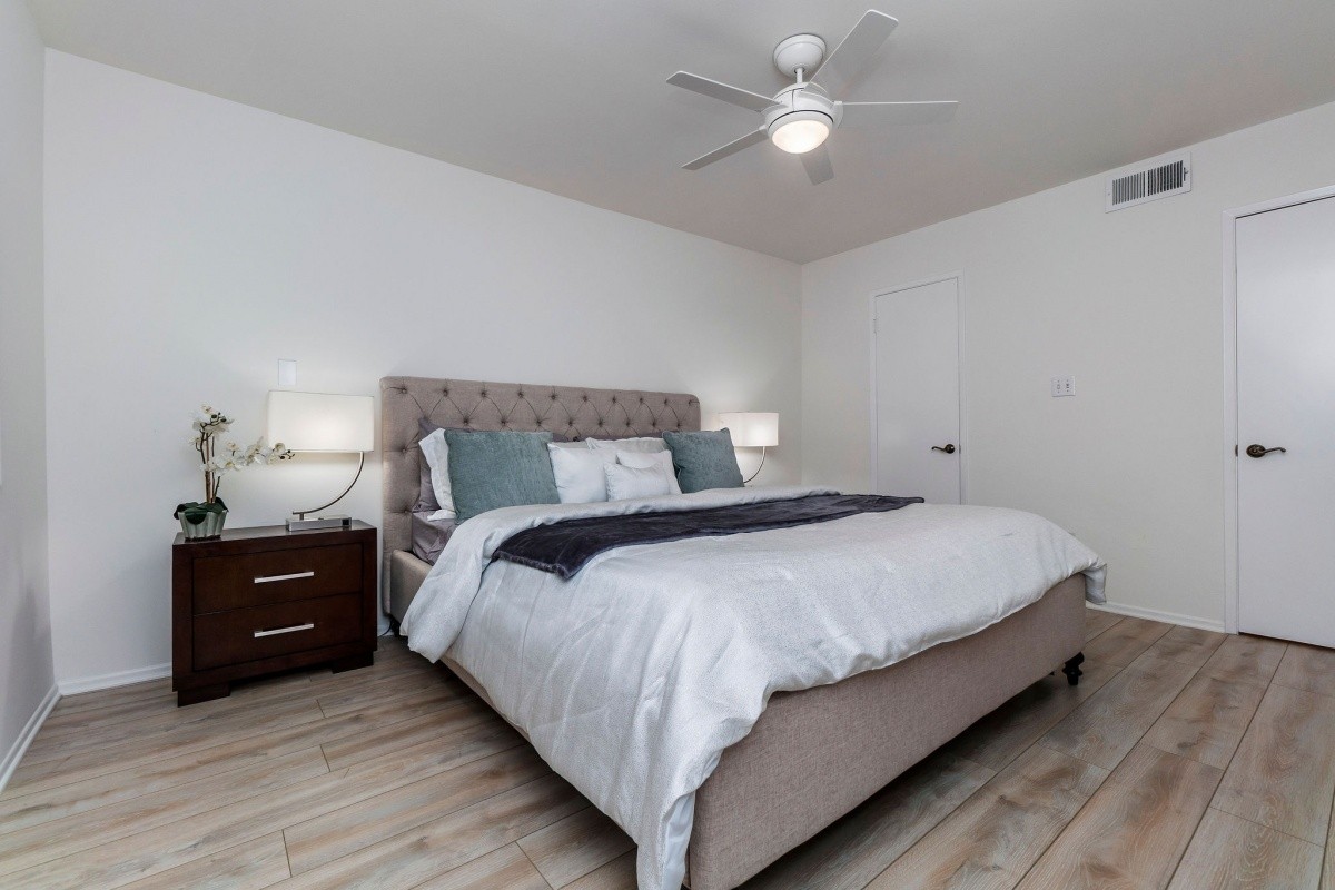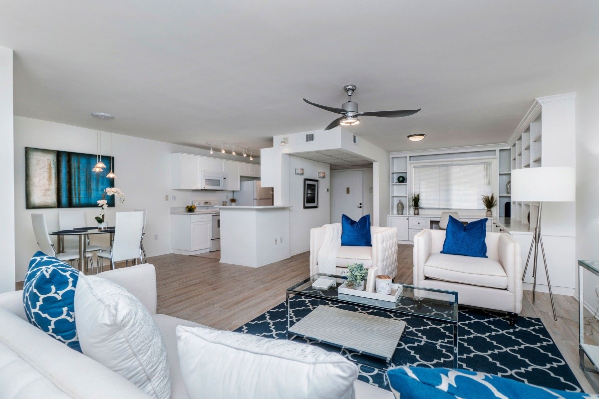 Multiple offers received, in escrow within 10 days, and closed for over the asking price! Newly refreshed interior finishes grace this open and spacious condo residence in a prime Studio City/ Sherman Oaks location! Moments away from Ventura Blvd, world class dining, shopping, entertainment/ attractions, and excellent schools, this expansive 1-bedroom unit includes a large den area with built-in shelving and desk for enhanced functionality, as well as new paint and flooring. The light and bright den and living room spaces flow effortlessly into the dining area and kitchen. Additional cabinet storage and a full bath reside off the hallway, as does the private master bedroom with walk-in closet. Other features include a fenced patio/ deck area accessible off the living room, TWO parking spaces, and a dedicated storage space in the garage! Well-maintained building with EQ insurance and a fabulous pool and patio area.