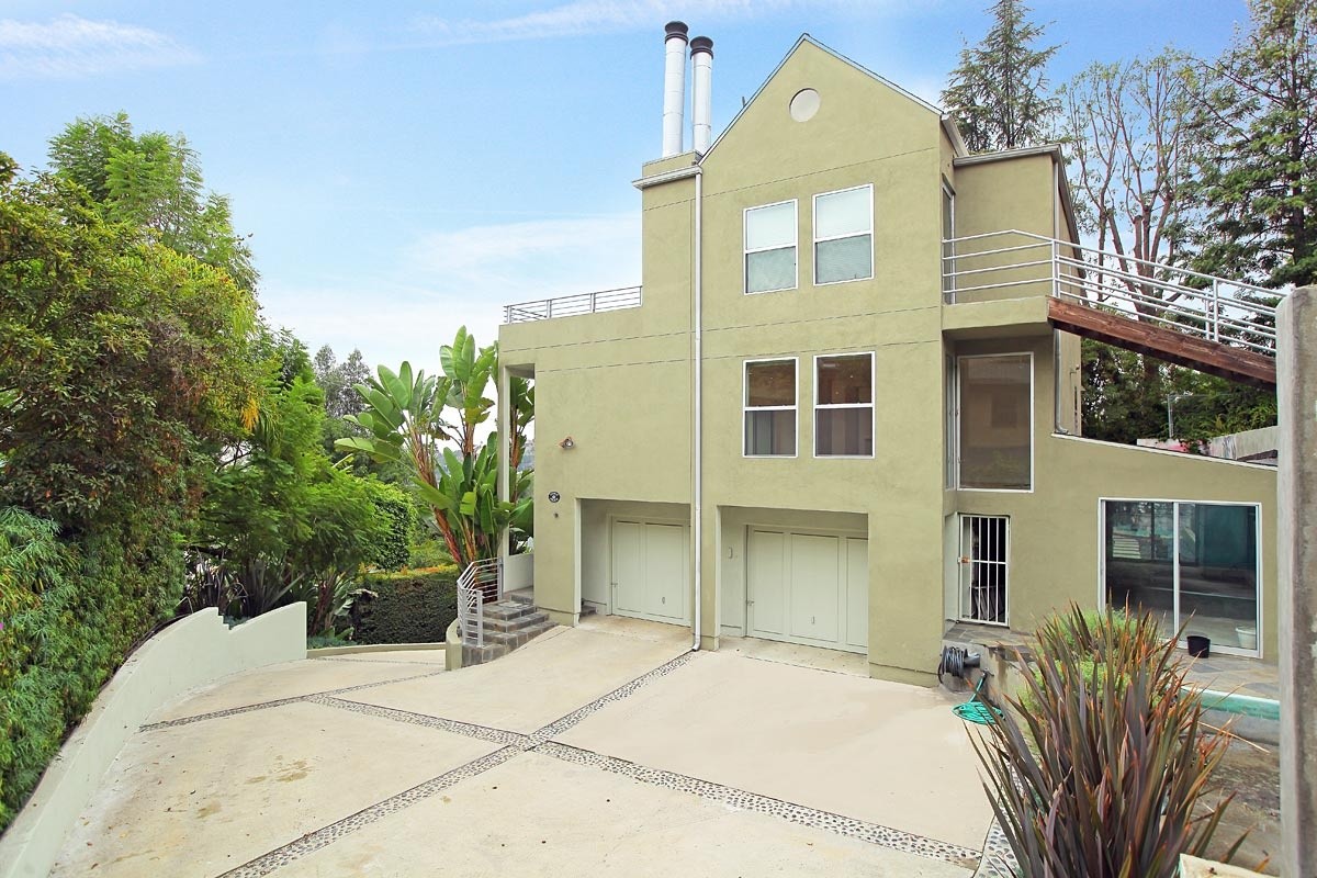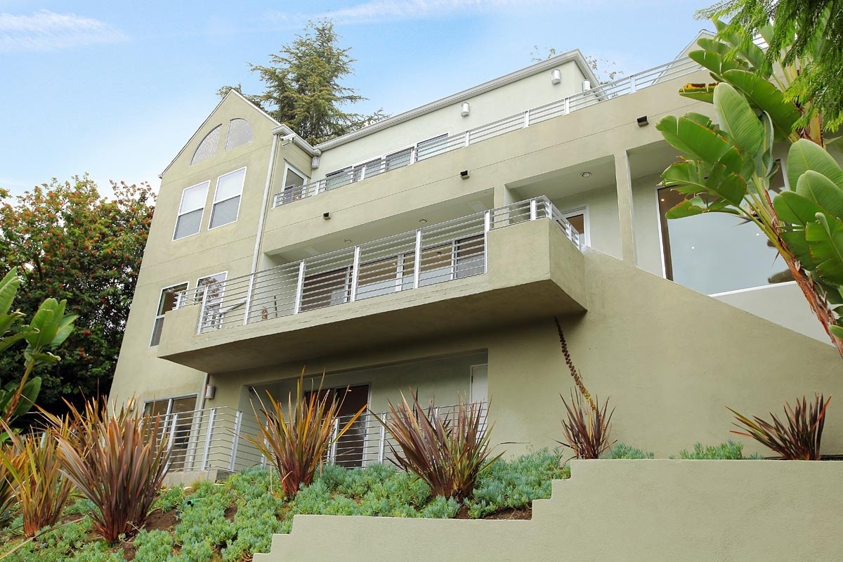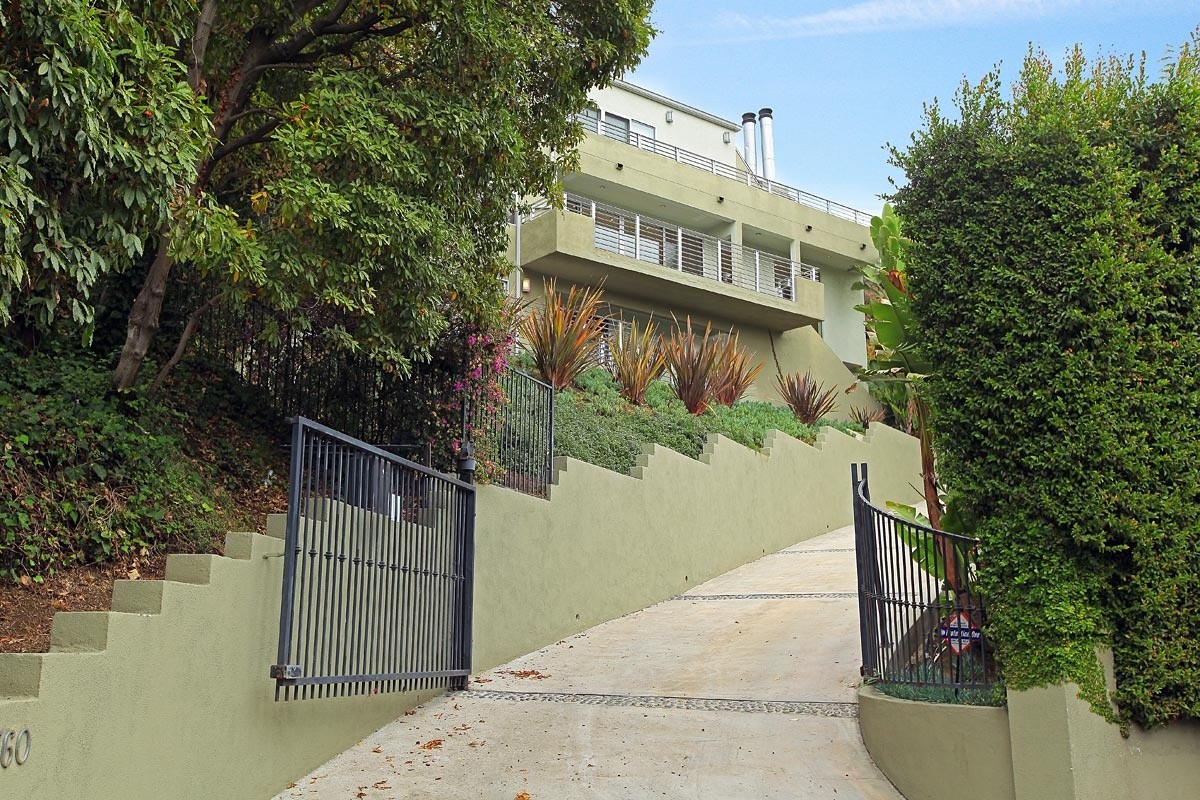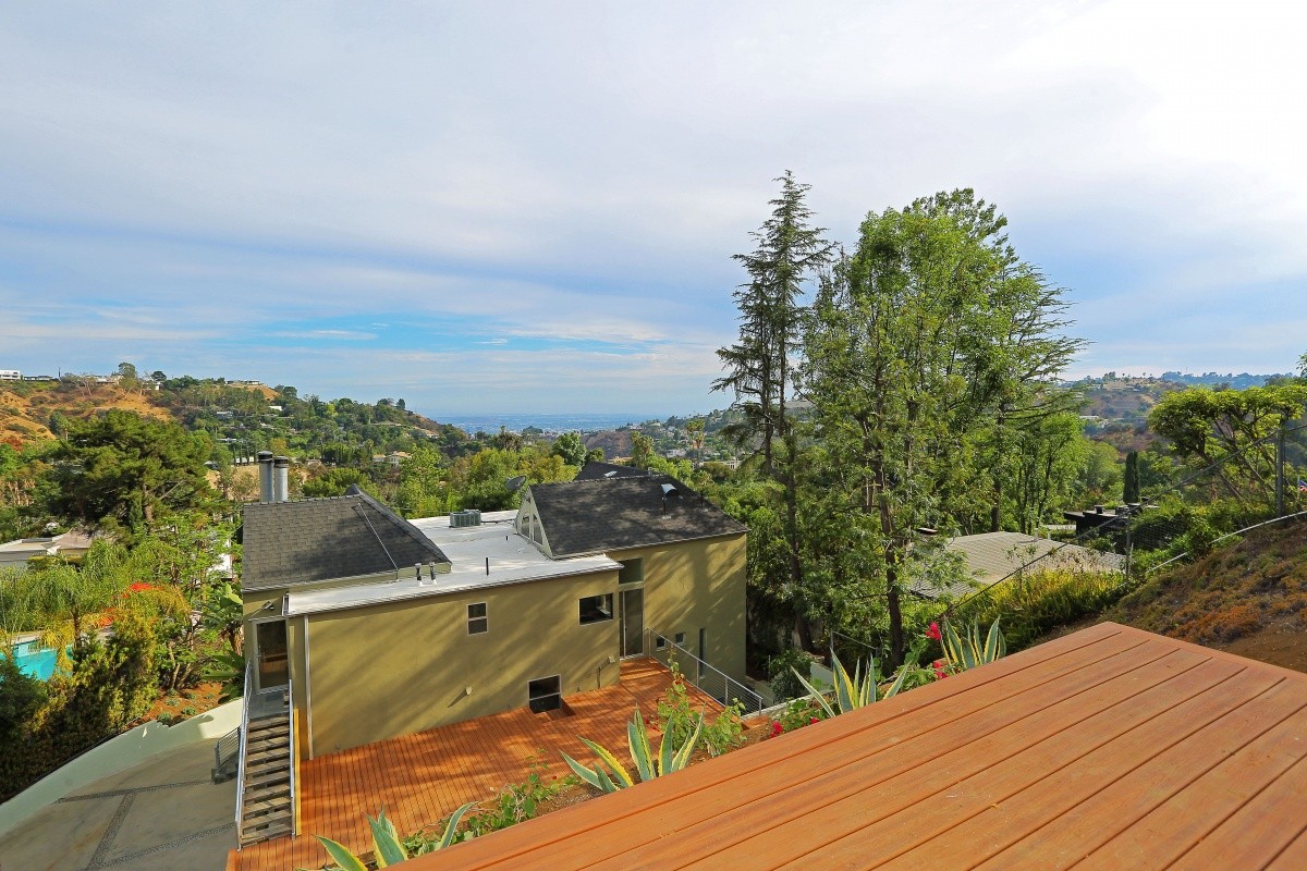 Gated contemporary showplace nestled in a fabulous enclave in the Hollywood Hills, featuring a brand new 600sf entertaining deck and new terraced viewing deck showcasing views down the canyon to the city lights below. A long, gated drive culminates with a towering waterfall feature, and spacious parking area. The sprawling entertaining great room includes a gourmet kitchen with world-class stainless steel appliances and exotic granite counters, plus views of the canyon, city lights and ocean. Soaring ceilings in the master suite and upstairs guest bedroom add volume and drama to the living space. The 4-bedroom, 3.5 bath home also features a media room, gym, and a security system. Centrally located between all city and Valley attractions, and ready for immediate occupancy.