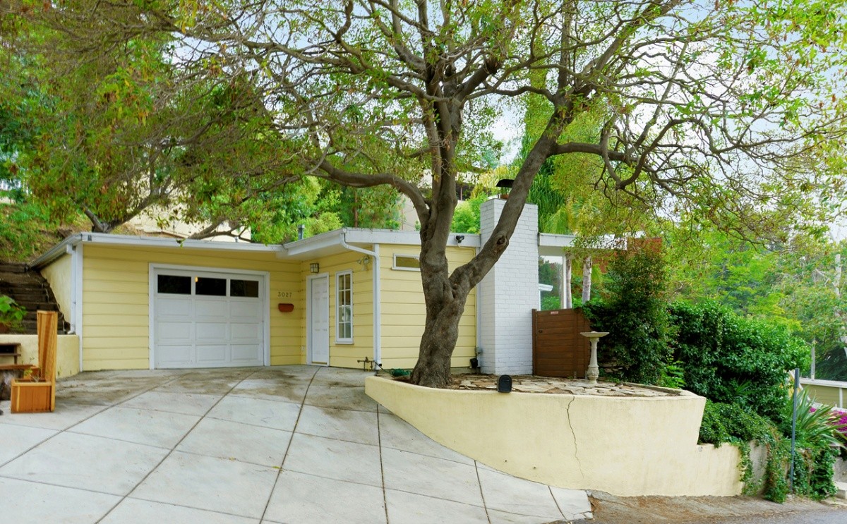 Nestled on a quiet dead-end road, this quintessential Hollywood Hills retreat offers a verdant canyon view, a private flat yard area, and a separate guest studio with kitchenette and bath. Tastefully remodeled throughout, the home boasts walls of glass that offer abundant natural light and showcase the yard and view. The open interior features a fireplace, skylights, and ceramic tile floors. Granite counter tops and stainless steel appliances grace the kitchen space. The large bedroom has 'wood' ceramic floors and French doors out to the yard. There is a one car garage, plus a laundry area. Centrally located to studios, restaurants, and shopping in the Valley and Hollywood, and freeway close to downtown LA.