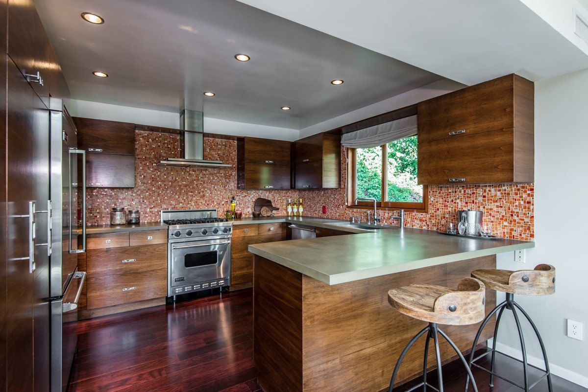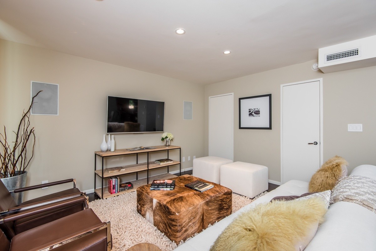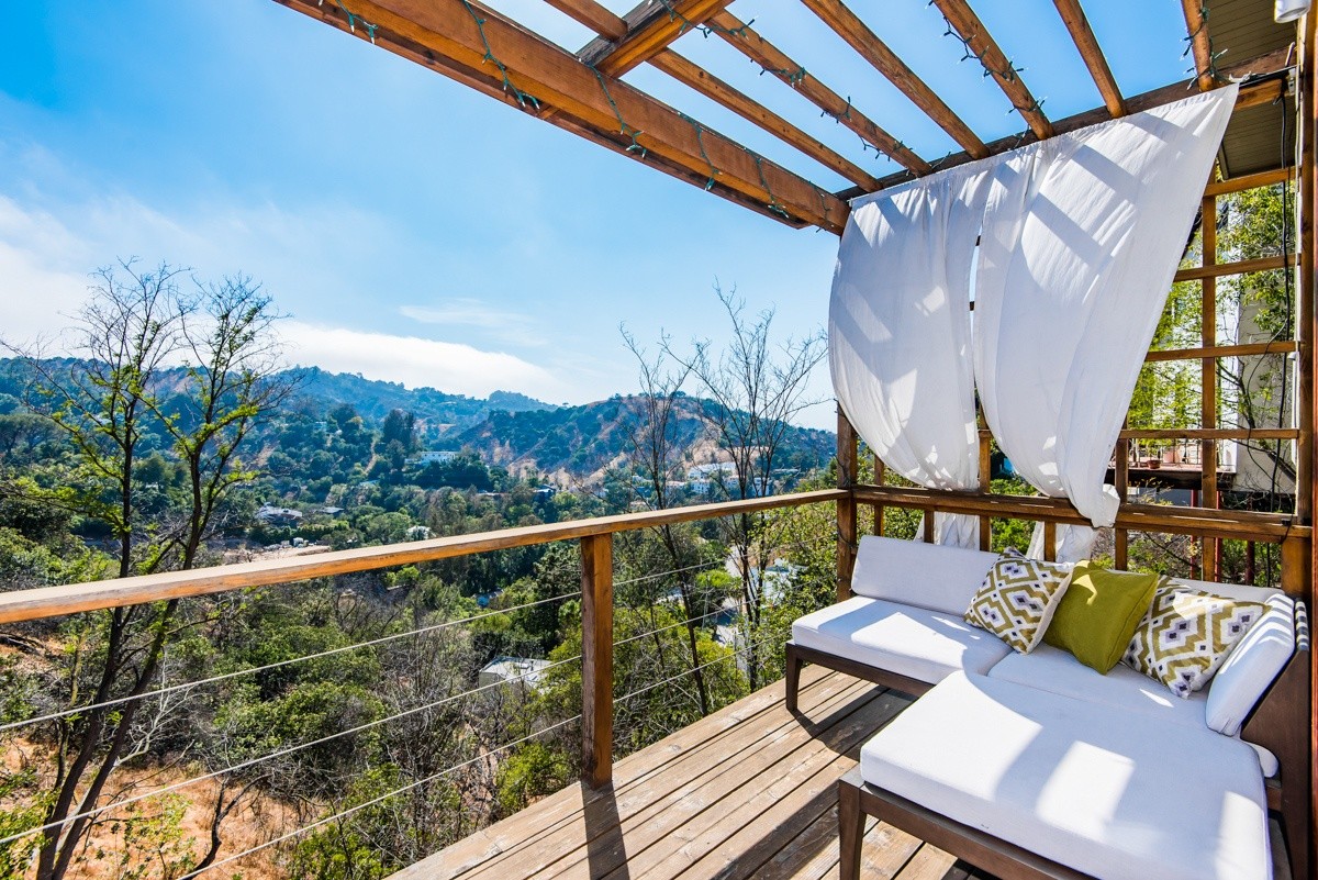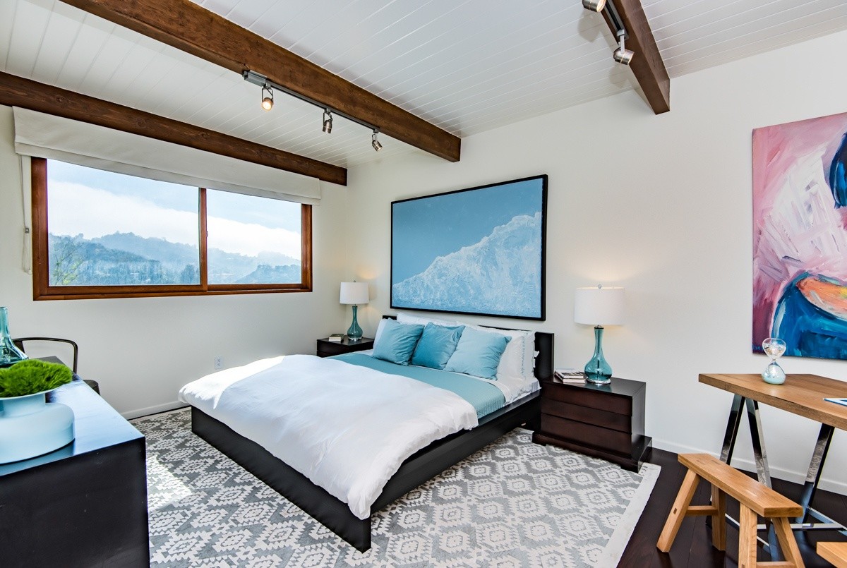 The pinnacle of modern hills living, this sublime escape seamlessly blends 1960's post and beam architectural elements with modern upgrades such as video security, integrated surround sound speakers, and remote-operated shades. Stunning wood-framed windows and sliding doors offer abundant natural light and showcase sweeping views of the canyon and surrounding hills views from nearly every room. The open-concept entertaining level boasts a fabulous gourmet kitchen with Viking Pro appliances, and living and dining areas that open out to a sprawling deck for outdoor enjoyment. Two oversized bedrooms reside upstairs; the master suite includes numerous built-ins, a free-standing fireplace, and a sumptuous bath with skylight. Walled and gated for utmost privacy and security. Fabulous Studio City hills location – moments away from Ventura Boulevard, and easy access to freeways or the Westside.