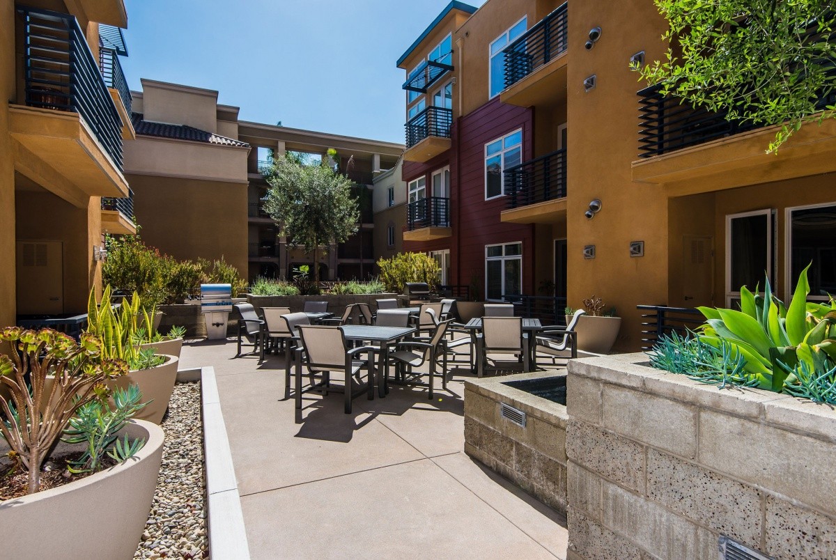 Stunningly appointed 1-bdrm + Den residence in the heart of Marina Del Rey! Sophisticated yet inviting, the gorgeous interior space features soaring ceilings throughout and a sprawling open layout in all entertaining rooms. The gourmet kitchen with Viking appliances and a large center island opens effortlessly into the dining area, which flows into the living room featuring walls of windows and a door out to the private patio. Quiet and private, the master suite boasts his and hers closets, and a spa-like bath with dual vanity and separate tub and shower. The den provides amazing versatility for use as a media room, home office, or even a second bedroom. Other features include in-unit laundry, beautiful custom flooring, and two side by side parking spaces. The highly regarded Indigo complex includes EQ insurance, and features two courtyards, community BBQ grills, a large gas fire pit and sitting area, indoor spa with sauna and hot tub, and well-equipped gym. Moments away from thriving shops, restaurants, movie theaters, parks and beaches!