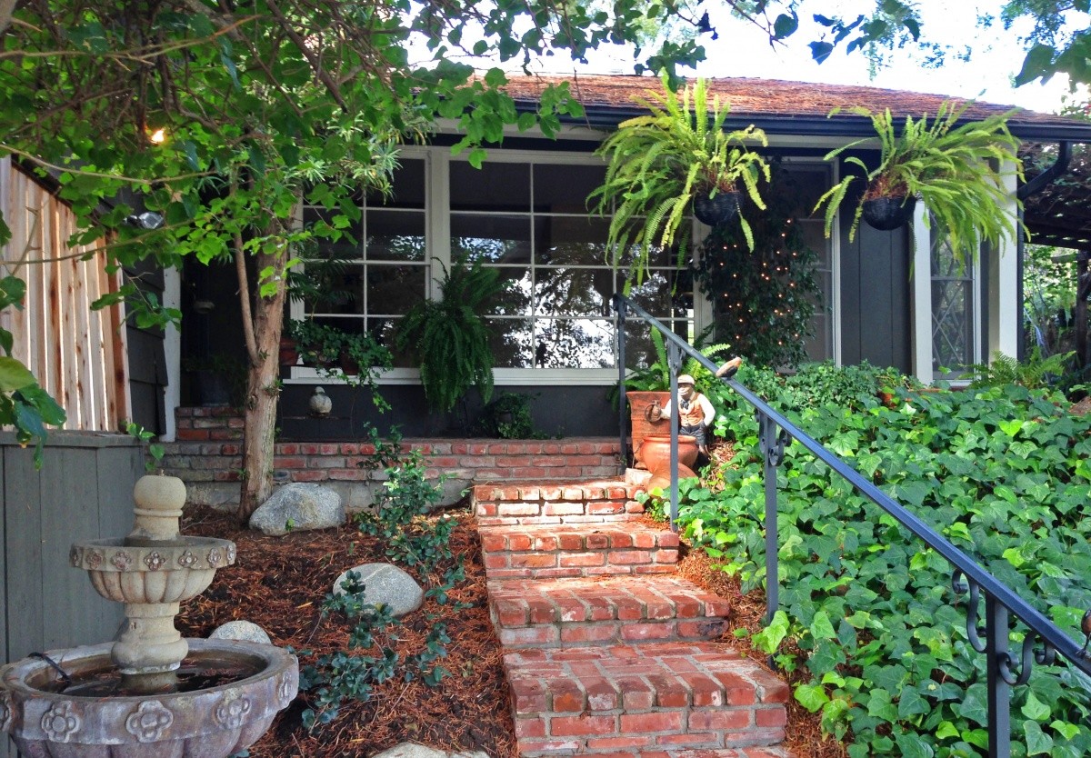 Classic 1950 Mellenthin traditional with period details and storybook charm throughout. Surrounded by lush greenery, the home exudes a feeling of privacy and tranquility. Walls of picture windows in the living room and dining area bring in abundant natural light, and showcase the beautiful foliage surrounding the home and front porch. Wood beams accent the ceiling in the living room, while a rustic fireplace graces the wall. An expansive den also boasts a fireplace, and opens out to the brick patio with picturesque gardens reminiscent of the south of France. The master bedroom opens out to a sprawling wood deck with a hot tub. A charming wood and tile country kitchen includes a breakfast area and breakfast bar. Fabulous location -- just a few blocks south of famed Ventura Boulevard, and all of its shopping, dining, markets, and attractions.