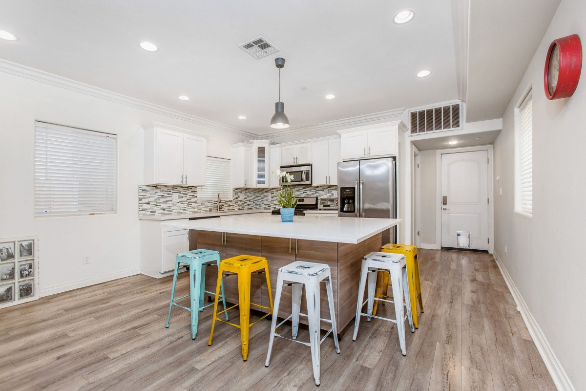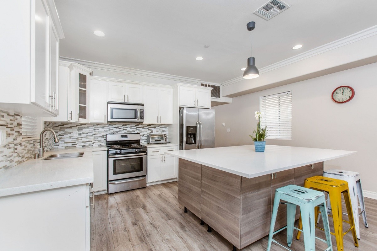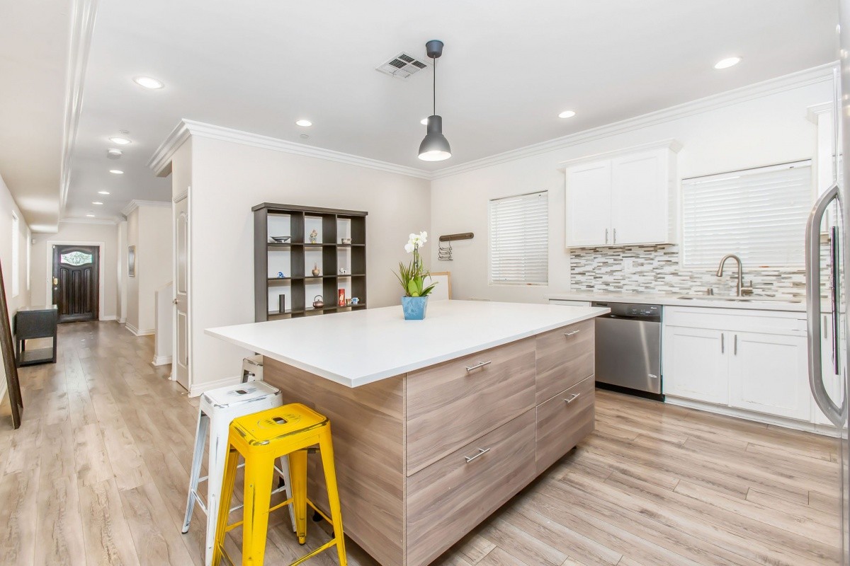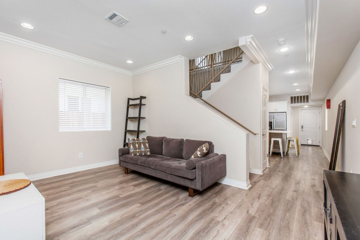 Located moments away from the brand new NOHO West development (Traders Joe's is open!), the NoHo Arts District, public parks, Burbank Airport, and Metro and freeway access, this spacious 4-bedroom home built in 2015 is perfectly designed for modern living. The functional layout boasts 4 bedrooms and 4 full baths, and offers over 1,900 sq ft of living space. An entertainer's dream, the sprawling eat-in kitchen features custom cabinets, quartz counter tops, stainless steel appliances, and a massive island for casual dining. 1 bedroom, a bathroom, and a living area complete the ground level. The upper level features 3 bedrooms with en-suite baths, and balconies off two of the bedrooms for indoor-outdoor living. Additional features include wood flooring throughout the main and upper level, custom tile bathrooms, a laundry closet off the kitchen, central air and heat, custom landscaping and a 1-car attached garage with space for extra vehicles in the driveway. Great home, great location!
