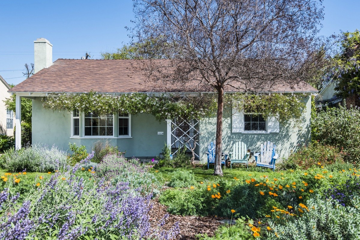 **SOLD WITH MULTIPLE OFFERS - Final sale price reflects purchase price reduction for buyer inspection items, plus additional reduction in the amount of the selling agent's commission due to buyer being a licensed sales associate and electing to forego that commission.** Nestled behind flowering vines and beautifully blooming drought-tolerant native landscaping, this picturesque 1940’s traditional exudes charm and warmth throughout. Perfectly laid out with an open, easy flow, the sprawling living room with bay window and classic brick fireplace opens into the dining area. Chefs of all abilities will love the stunningly remodeled kitchen with stainless steel appliances, soft-close cabinets and drawers, and tons of counter and storage space. Three generously sized bedrooms, and a cute bath with original tile complete the interior space. Other features include hardwood floors, smooth ceilings and recessed lights in the entertaining rooms, vinyl windows throughout, an expansive covered rear patio and grassy yard for outdoor enjoyment, and a detached structure with a sound/ recording studio and extra storage room. All ideally located near freeway access, parks, playgrounds, and a weekly local farmers market.