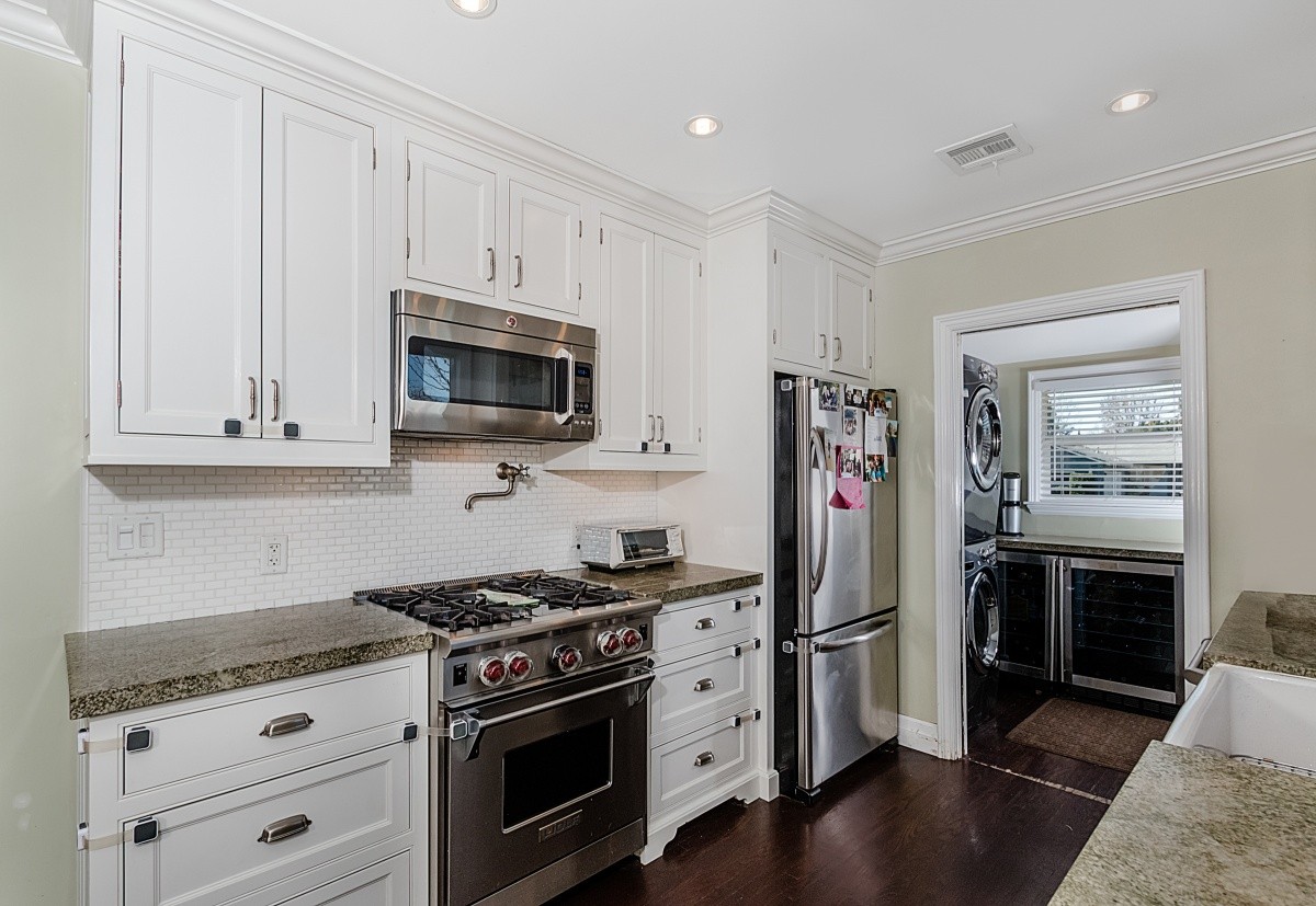 Beautifully upgraded 4-bedroom, 2-bath home in a desirable and convenient Lake Balboa location! Glossy hardwood floors lead into the spacious living room featuring recessed lights, crown molding, stone adorned fireplace, warm and inviting natural light, and access out to the picturesque rear yard. The remodeled chef’s kitchen offers a chic and stylish design with a Wolf range, farmhouse sink with Instahot feature, granite countertops, generous storage spaces, and built-in stainless steel appliances. The Master bedroom boasts crown molding, a ceiling fan, and a private 3/4 bathroom with radiant heating in the floors. Spacious secondary bedrooms include ample closet space, stylish window treatments, and newer carpeting. The rear yard is an entertainer's paradise with drought and dog friendly landscaping, covered patio with cooling misters, privacy hedges, fire-pit, flowering gardens, and mature fruit trees. Other upgrades include a pre-paid solar system with rooftop panels, newer AC and heat system, dedicated laundry room with temperature controlled wine storage, dual pane windows, tankless water heater, and a 2-car garage wired and ready for your electric car.