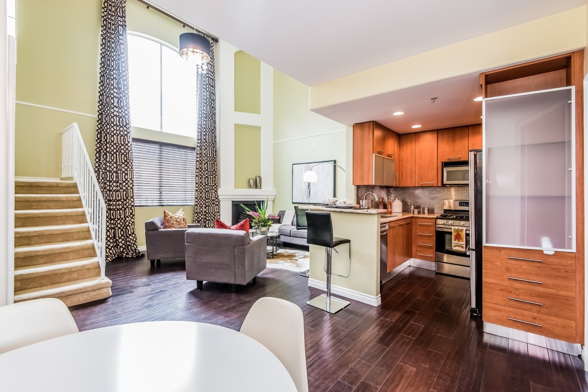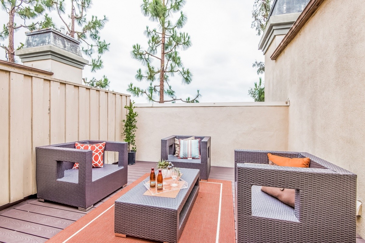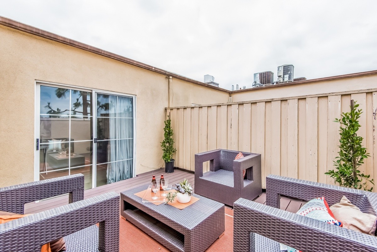 Stunningly remodeled top-floor 2+1 condo with two fireplaces, soaring ceilings, in-unit laundry, and a private rooftop deck. Natural light abounds throughout the beautiful living space, which features dark hardwood floors in the open entertaining rooms. Granite counters, stainless steel appliances, and a sleek metallic tile backsplash adorn the kitchen and breakfast bar. The spacious master bedroom and completely redone bath also reside on the main level. Upstairs is a loft-style second bedroom, which could also be a home office or multi-purpose room, and offers direct access out to the wonderful rooftop deck that's perfect for relaxing outdoors. The appealing Mediterranean-inspired building was redone in 2003, and features a gym and a double gated parking garage. Centrally located - moments away from beaches, LAX, freeway access, the Howard Hughes complex, newly redone Forum, future site of the pro football stadium where the LA Rams will play, and tons of shopping and dining options.