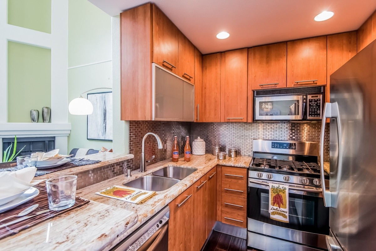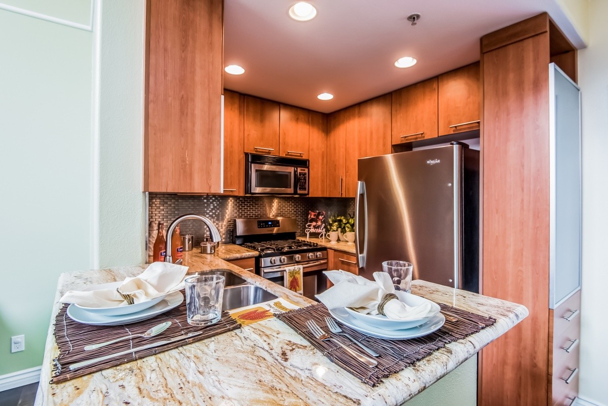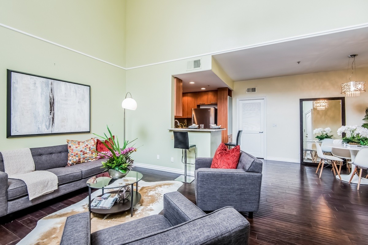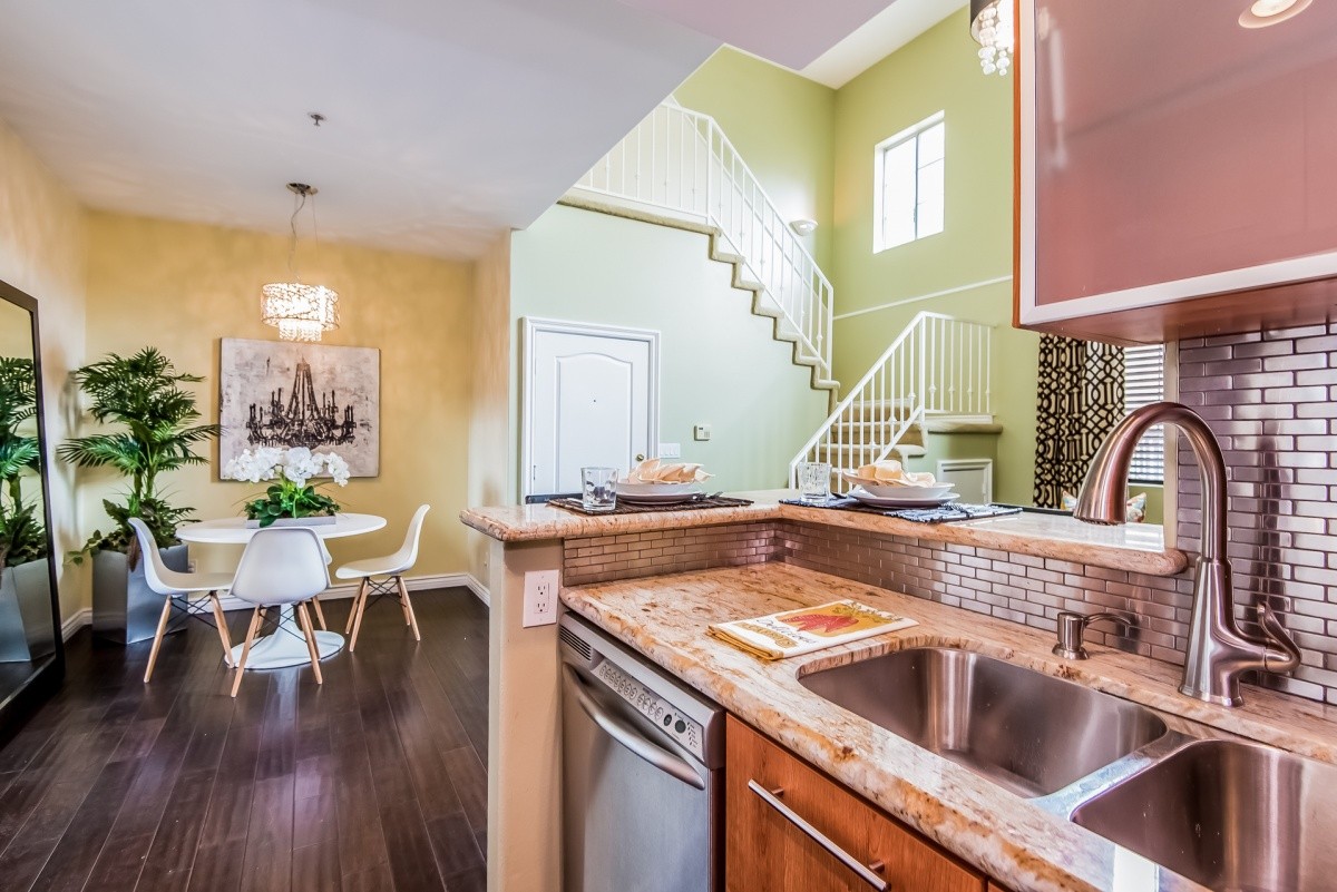 Stunningly remodeled top-floor 2+1 condo with two fireplaces, soaring ceilings, in-unit laundry, and a private rooftop deck. Natural light abounds throughout the beautiful living space, which features dark hardwood floors in the open entertaining rooms. Granite counters, stainless steel appliances, and a sleek metallic tile backsplash adorn the kitchen and breakfast bar. The spacious master bedroom and completely redone bath also reside on the main level. Upstairs is a loft-style second bedroom, which could also be a home office or multi-purpose room, and offers direct access out to the wonderful rooftop deck that's perfect for relaxing outdoors. The appealing Mediterranean-inspired building was redone in 2003, and features a gym and a double gated parking garage. Centrally located - moments away from beaches, LAX, freeway access, the Howard Hughes complex, newly redone Forum, future site of the pro football stadium where the LA Rams will play, and tons of shopping and dining options.