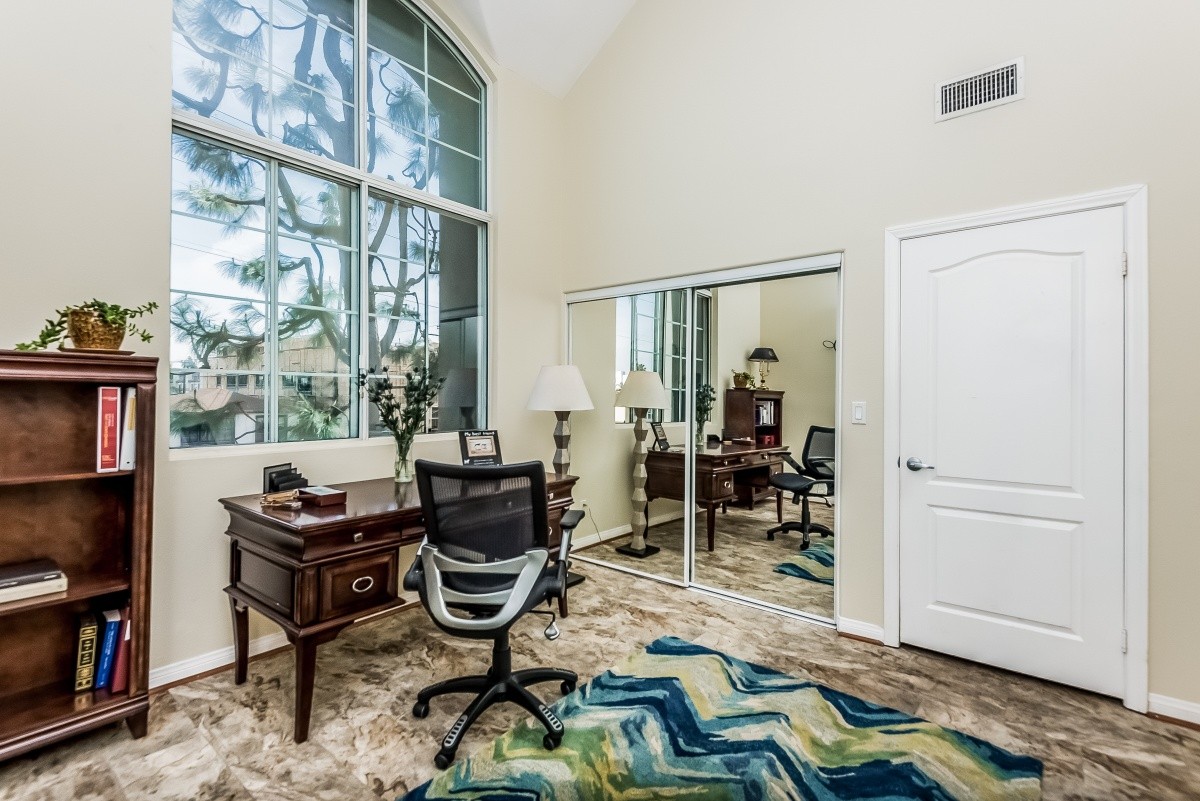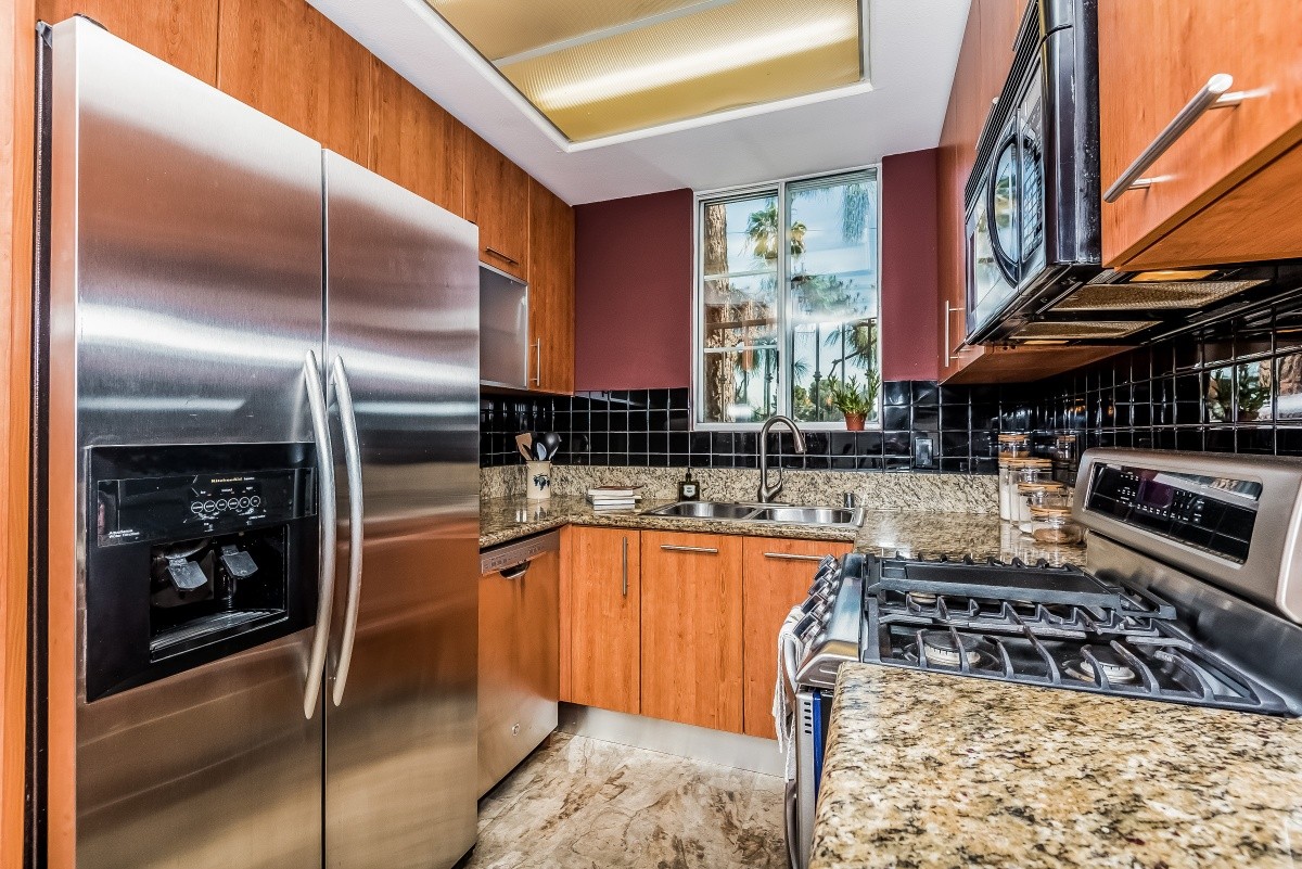 Sold with MULTIPLE OFFERS for OVER ASKING PRICE! Soaring ceilings and massive volume abound in this light and bright top-floor unit, complete with two spacious bedrooms, an incredible den that could easily be a 3rd bedroom, and in-unit laundry. Great entertaining starts in the gourmet kitchen, which boasts stainless steel appliances and granite countertops, and opens into the dining room and living room with towering windows, a fireplace, and a private balcony. Upstairs, the swanky den is wired with surround sound, and has a massive bonus room that could be a bar area, or a home office. The secluded master suite includes vaulted ceilings, a cozy fireplace, en suite bath, and three closets. The appealing Mediterranean-inspired building was redone in 2003, and also features a gym and a double gated parking garage. Centrally located - moments away from beaches, LAX, freeway access, the Howard Hughes complex, newly redone Forum, future site of the pro football stadium where the LA Rams will play, and tons of shopping and dining options.