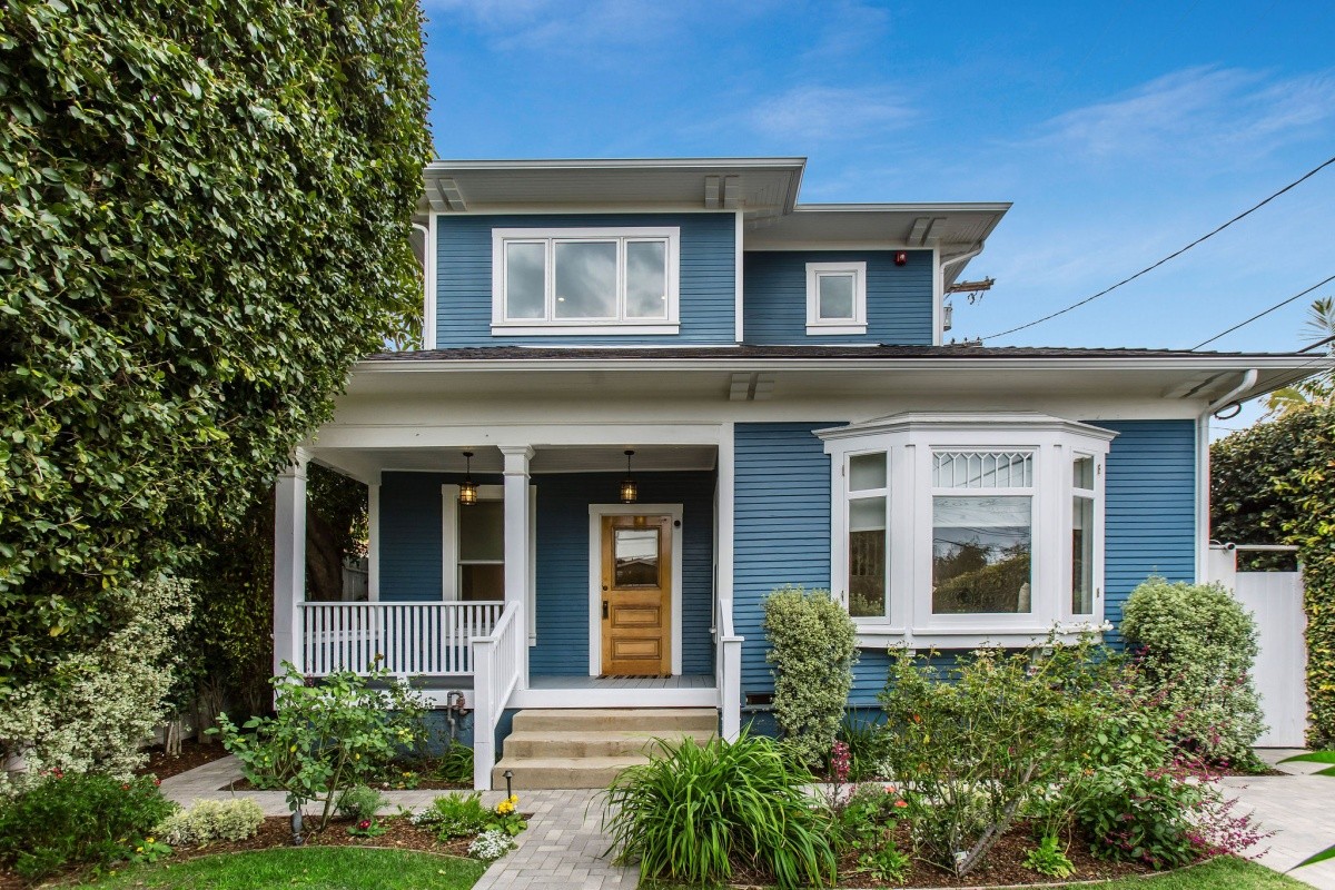 Epitomizing the essence of SoCal beach living, this cheerful and charming retreat resides several blocks from the beach and Main Street, and has been meticulously and lovingly renovated for effortless, enjoyable modern living. Up the front walkway through the hedged and gated front yard, a picture-perfect porch welcomes residents and visitors inside the home. The thoughtfully expanded residence features beautifully designed interior spaces with timeless character accents and useful nuances throughout, beginning in the light and bright living room that features a bay window with bench seating surrounded by floor to ceiling built-in shelving. The living room opens seamlessly into the dining room that's perfect for formal or everyday casual living, while the gourmet chef's kitchen features an open pass-through to the dining room, a second bay window and sunny sitting area, stainless steel appliances, and a stunning tile backsplash. One bedroom and a spacious den/ office reside downstairs, the latter of which can also serve as an optional fourth bedroom and opens out to the back deck. Two comfortable and inviting bedroom suites reside upstairs, both with en-suite baths, and the primary featuring soaring cathedral ceilings and a large walk-in closet. Other amenities include an owned solar system, newer central heating and air, tankless water heater, and two dedicated lines for EV charging. Perfect for indoor/ outdoor living, the property features numerous balconies and other outdoor spaces including a rear yard and deck with a sprawling seating area and projection wall setup for creating memorable evenings. Truly a rare opportunity to own a remarkable property in a prime beach location!