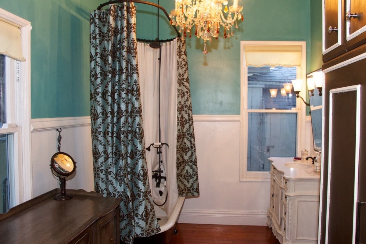 Character details abound throughout the residence – vintage doors and windows, soaring ceilings with beautiful molding, rustic hardwood floors, vintage hardware, and a claw-foot tub in the master bath. The front porch is perfect for relaxing outdoors and enjoying the ocean breeze, while the rear yard can accommodate larger gatherings. A true beach escape, yet only minutes from prime shopping, dining, and entertainment on Main Street.