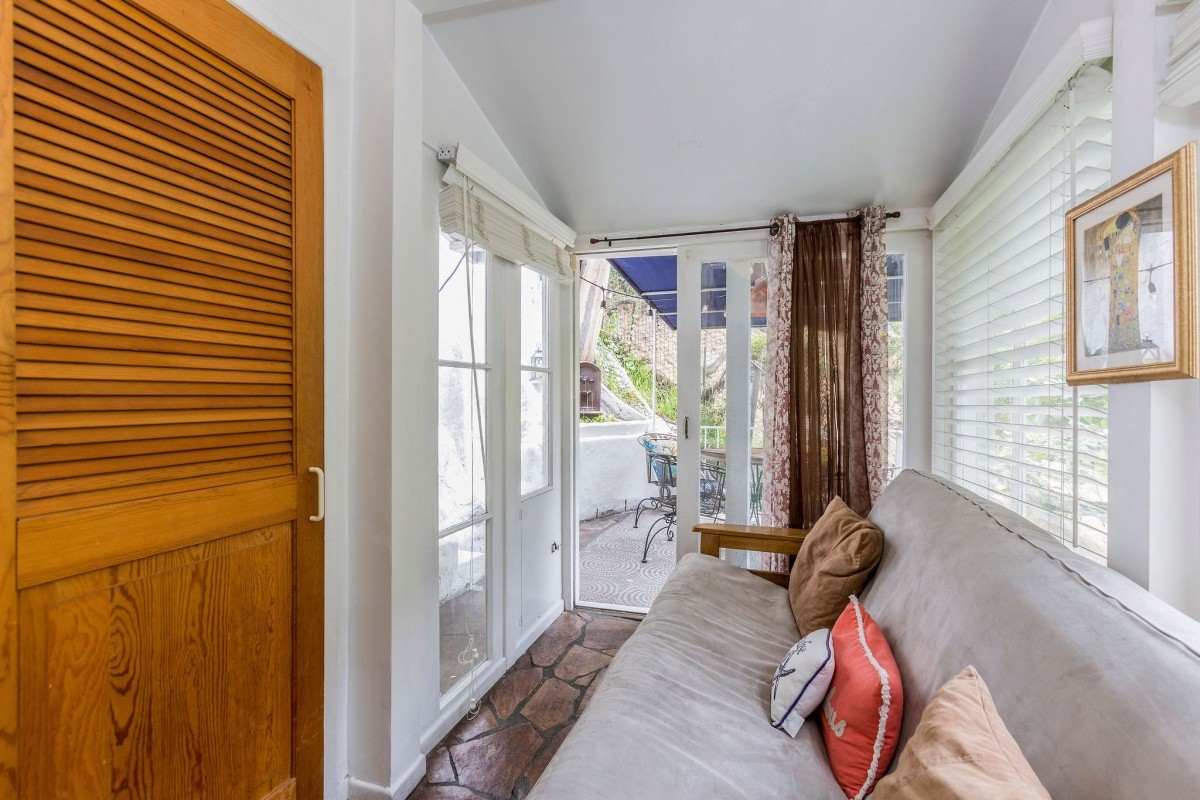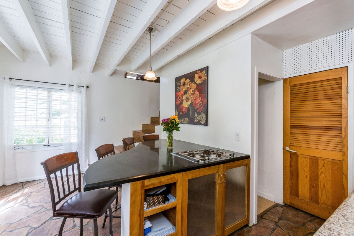 Quintessential 1920's Laurel Canyon charmer nestled among the trees, moments away from coveted Wonderland Elementary, the Canyon Store and tons of city and Valley attractions! Perched up above the street, the light and bright interior features warm wood floors, soaring ceilings, recessed lights in the living room, and an abundance of windows bringing the hillside scenery into the living space. French doors open from one of the two spacious and inviting bedrooms out to a sprawling deck for outdoor relaxation. A well-appointed bath resides in between the two bedrooms. Downstairs, the dining area flows into the kitchen, which boasts stainless steel appliances and includes bar seating for casual dining. Steps away from the kitchen is a quaint patio with fountain and string lights - perfect for al fresco dining and entertaining. A flexible bonus room that could be an office or extra lounge space, laundry room off the kitchen, second bathroom, and 1-car finished garage complete the property.