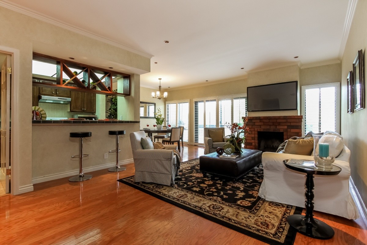 Great opportunity to own a turnkey Plan D corner unit in the wonderful Pacific Club complex. Spacious and open throughout, a formal entry leads into the inviting living room with gas fireplace. The updated eat-in kitchen flows effortlessly into the dining area, and the oversized master suite boasts a sumptuous bath with soaking tub and separate shower, great closet space, and a balcony. Other features include hardwood floors, recessed lighting, plantation shutters, a second balcony off the dining room, and side-by-side washer/ dryer in the unit. Fabulous community amenities include sparkling pools and spas, fitness center, racquetball court, pool table, ping pong, library, steam showers, saunas, and well-manicured grounds. Minutes to the beach, bike paths, local restaurants and LAX.