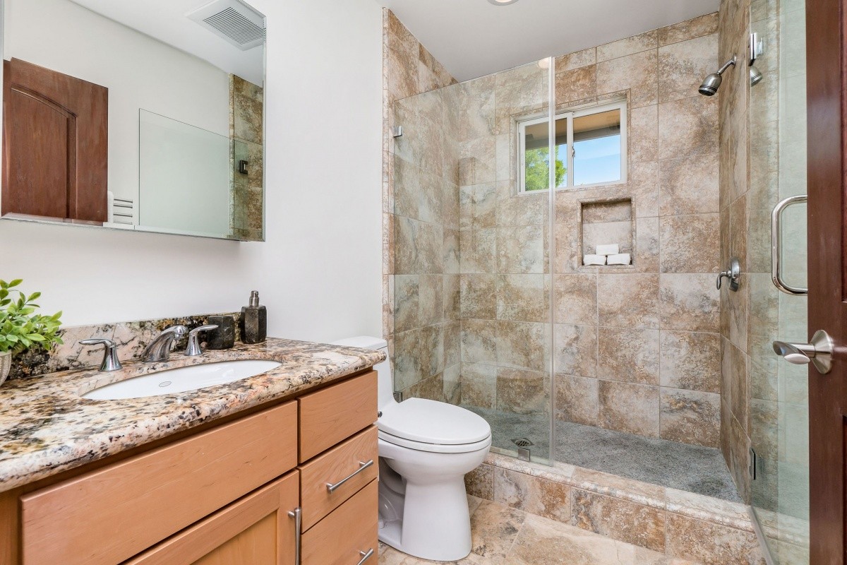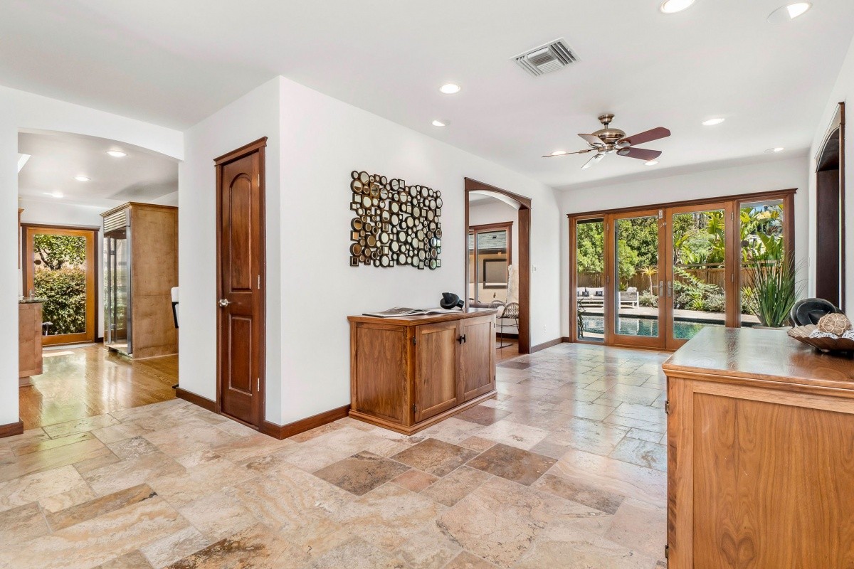 Situated up a long, gated private drive on a 30,000+ sf lot, this one-of-a-kind property in coveted Laurel Hills is an oasis unto itself. Through the lushly landscaped courtyard entrance, the sprawling interior space features stone and wood accents throughout, embracing an organic, earthy zen ambiance. The broad entryway flows effortlessly into the entertaining rooms -- the gourmet chefs kitchen with skylight and center island, showplace formal dining room with walls of windows and stunning built-ins, grand living room with floor to ceiling stone-adorned fireplace, fabulous den/ TV room, intimate reading nook, and informal coffee and bites corner. The primary bedroom suite boasts a skylight that enhances the airy and open feel, and all of the spacious bedroom sanctuaries feature windows bringing the outdoors in, and spa-like en suite baths. Outdoor entertaining and relaxation options abound in the front courtyard and huge rear/ side patio featuring a dark-bottom pool, gas fire pit, and built-in BBQ and pizza oven. A separate accessory living space resides off the pool patio, complete with bedroom, kitchenette, and bath; and a third detached structure boasts a rustic wood adorned office space with soaring wood beam ceilings, bathroom, and storage/ wine cellar space below. A truly remarkable property, located in prime Wonderland School area. Co-listed with Kirk Frieden, Coldwell Banker (DRE #00581910).