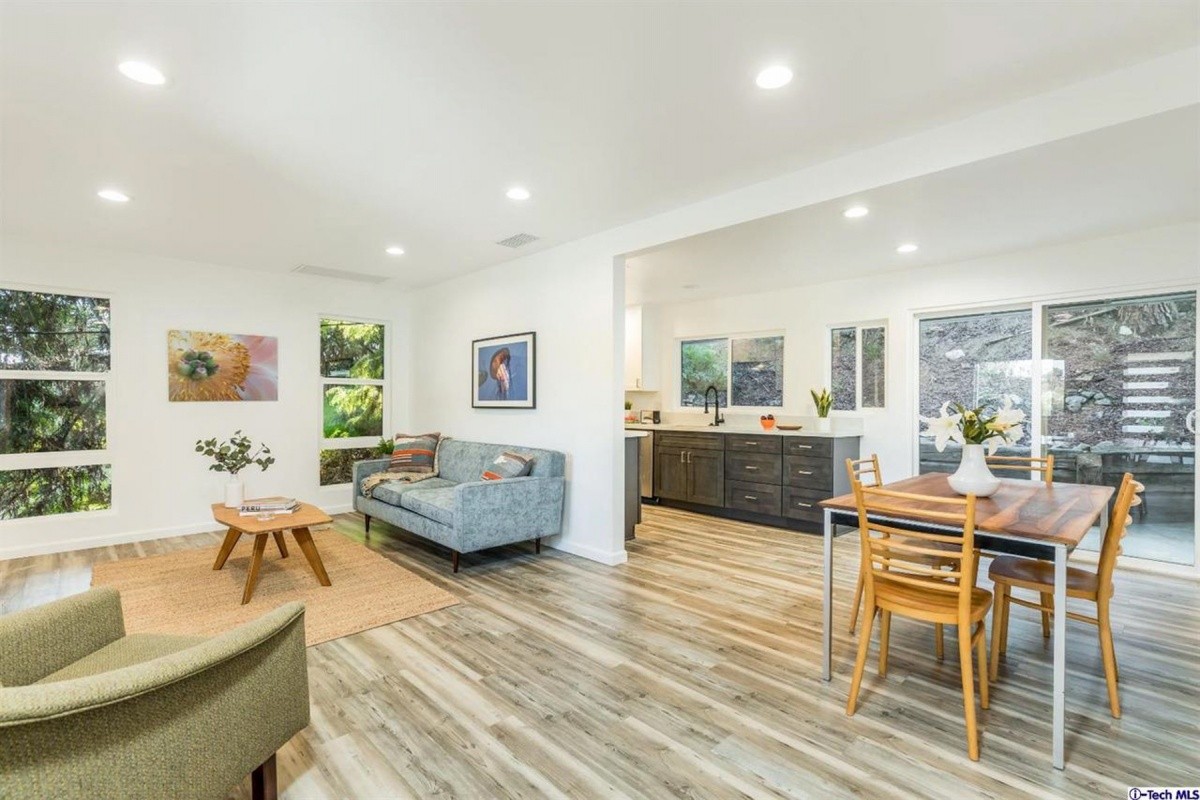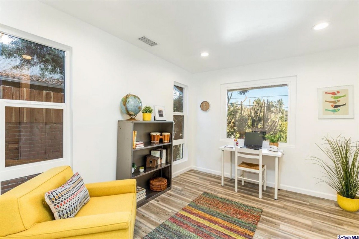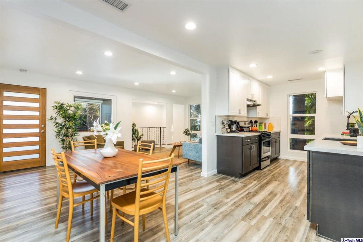Nestled on a street-to-street lot in one of Highland Park’s most sought after neighborhoods, this retreat in the hills has been stylishly re-invented for modern living. Natural light abounds throughout the open concept living room/dining room and all new kitchen, which includes stainless steel appliances, new cabinets, and quartz counter tops. Sliding door access out to the back patio provides indoor/outdoor living and entertaining options. The versatile layout offers one bedroom and bath upstairs, and two additional bedrooms and a second bath downstairs. A separate entrance to the downstairs affords the possibility of utilizing that space as private studio or work space. Additional features include: laundry room off kitchen, new flooring throughout, new windows, central AC and heat, tankless water heater, copper plumbing, new electrical panel, and a large back yard with endless possibilities for terracing and gardening. Centrally located to all Eastside eateries and attractions, the Rose Bowl, Old Town Pasadena, and Downtown LA.